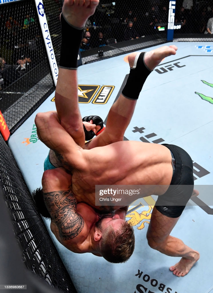 한 킥 한다는 페더급 중위 랭킹 킥커 간의 메인에서는 초기대 주인 10위 기가 치카제(34, 조지아)가 9위 에드손 바르보자(35, 브라질)를 TKO로 꺾었다. 스피드의 우위를 가진 치카제는 초반부터 인 앤 아웃으로 거리를 조절하며, 로우, 미들, 내려차기 등으로 바르보자를 괴롭혔다. 뛰어들며 스트레이트 등으로 펀치력도 피로했던 치카제는 3R 초중반 라이트 훅으로 상대를 휘청거리게 만든 후, 러쉬, 초크에서 일어난 바르보자에 재차 펀치를 히트. 레프리의 스탑을 이끌어 냈다.