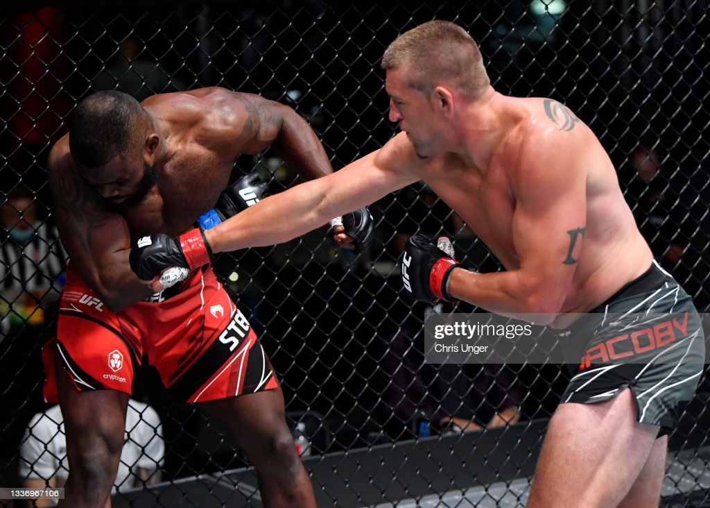 킥복서 저스틴 자코비(33, 미국)는 차분한 타격 러쉬 TKO승을 획득. 브리티쉬 스트라이커 대런 스튜어트(30, 잉글랜드)를 3연패에 빠뜨렸다. 초반 상대의 테이크 다운을 내줬으나, 스탠딩에 성공한 자코비는 타격 교환 중 레프트에 이은 라이트를 히트, 다리를 풀어버렸다. 스튜어트가 펀치를 내며 대응했으나, 자코비가 핀포인트 추격타를 박아넣기 시작, 결국 스트레이트를 직격당한 스튜어트가 크게 비틀거리자, 레프리 제이슨 허족이 뛰어들어 경기를 중단시켰다.