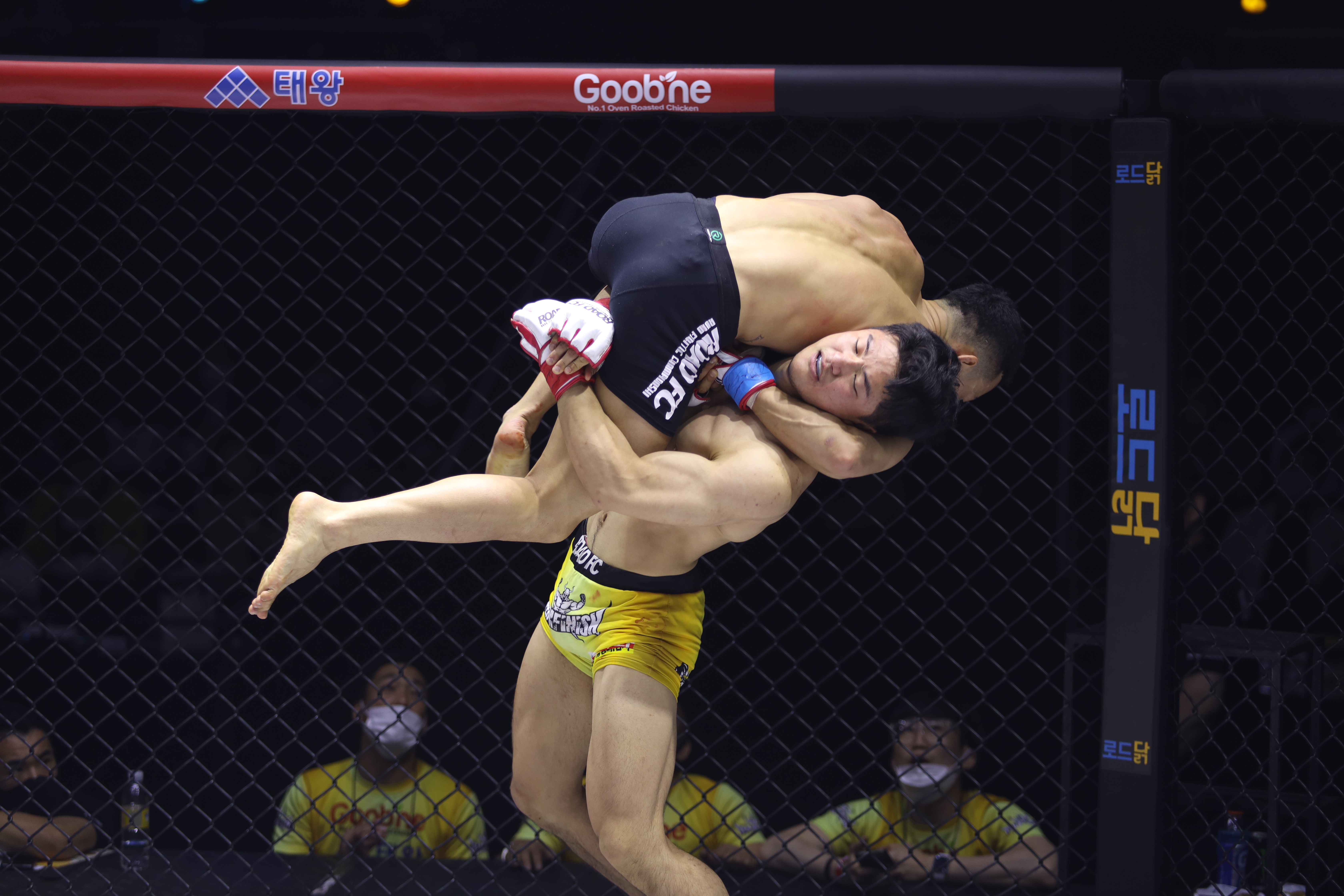 프로 전승의 킥복서 양지용(25, 제주 팀더킹)은 서브미션으로 대역전을 피로, 프로 4연승을 기록했다. 작년도 신인왕인 파워형 레슬러 김현우(20, 팀피니쉬)에게 먼저 테이크 다운을 걸었으나 테이크 다운과 클린치 압박, 2R의 트라이앵글 초크 등에 자신의 장기인 타격이 봉인당해 쉽지 않은 경기를 치러야했다. 그러나 마지막 3R, 싱글렉 슬램을 시도하는 상대의 목을 공중에서 캐치한 양지용이 롤을 시도하는 상대를 그대로 따라가 그립을 추가, 탭을 받아냈다.