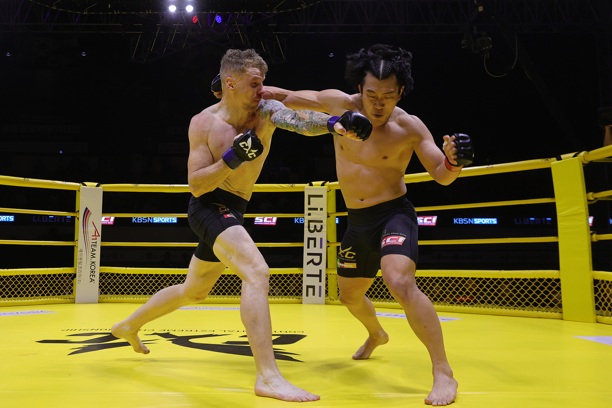전 더블지 FC 헤비급 챔피언 김명환(28,익스트림컴뱃)은 전 UFC, PFL 출산 오마리 아흐메도프(38, 러시아)와의 난전 끝에 판정패를 기록했다. 초반 테이크 다운을 허용, 백까지 내줬던 김명환은 경기 내내 클린치에서 밀리며 쉽지 않은 경기를 치러야 했다, 막판 압박에 지친 상대에 타격 전을 시도했던 김명환은 그러나 크게 데미지를 주지 못하고 경기가 종료, 판정패를 면하지는 못했다.