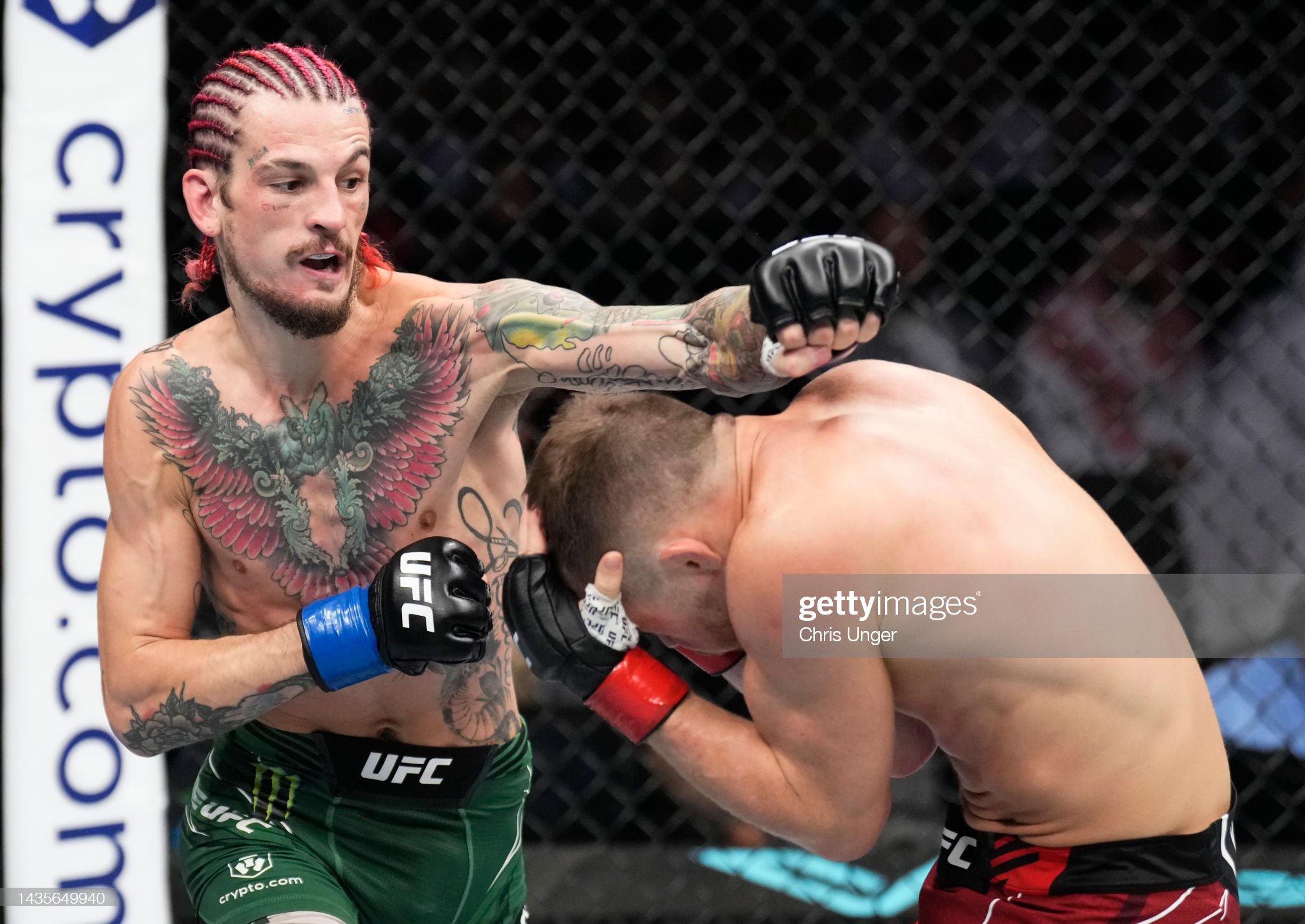 11경기: 알저메인 스털링 > 타일러 제프리 'TJ' 딜라쇼 (TKO 2R 3:44) * 밴텀급 타이틀 전