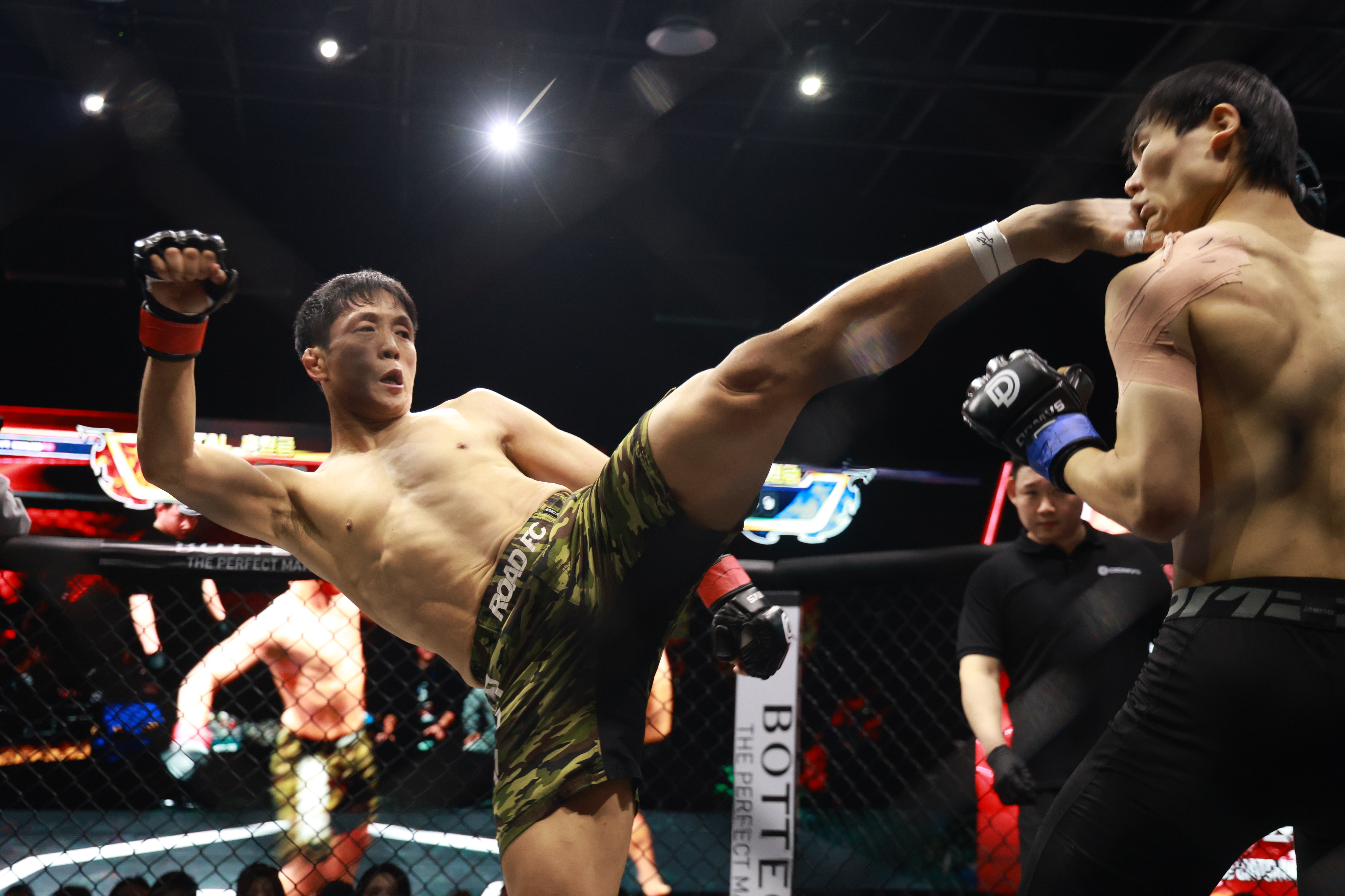 19년 9월 난딘 전 이후로 오랜만에 복귀 전에 나선 태권도 파이터 홍영기(41, 압구정 짐) 같은 태권도 베이스이자 데뷔 전에 나서는 박태용에게 2R TKO승리를 챙겼다. 시작하자마자 로우블로우와 두 차례 서밍에 짧지 않은 휴식시간을 가져야 했던 홍영기는 울분을 풀 듯, 상대를 휘청거리게 만드는 펀치와 돌개차기 등 태권도 킥, 한 차례 테이크 다운으로 1R을 마쳤다. 2R 시작직후 미끌러졌던 홍영기는 그러나 다시금 테이크 다운을 성공, 탑 마운트에서의 파운딩과 엘보로 레프리 스탑을 이끌어 냈다.