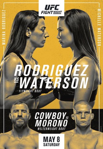 1주일 전 긴급 투입된 탓에 플라이급으로 진행된 메인에서는 스트로급 6위의 국대 출신의 헤비펀처 낙무아이 마리나 호드리게스(브라질, 34)가 클린치 테이크 다운 후 그라운드 게임으로 9위 미셸 워터슨(34, 미국)을 다채로운 무에타이 펀치를 앞세워 판정승을 가져갔다. 클린치 니 킥을 내다 테이크 다운을 허용, 4R을 내줘야 했었던 호드리게스는 그러나 자신의 타격 거리에서 시종일관 상대를 압박, 시원시원한 타격으로 심판 전원일치 승리를 챙길 수 있었다.