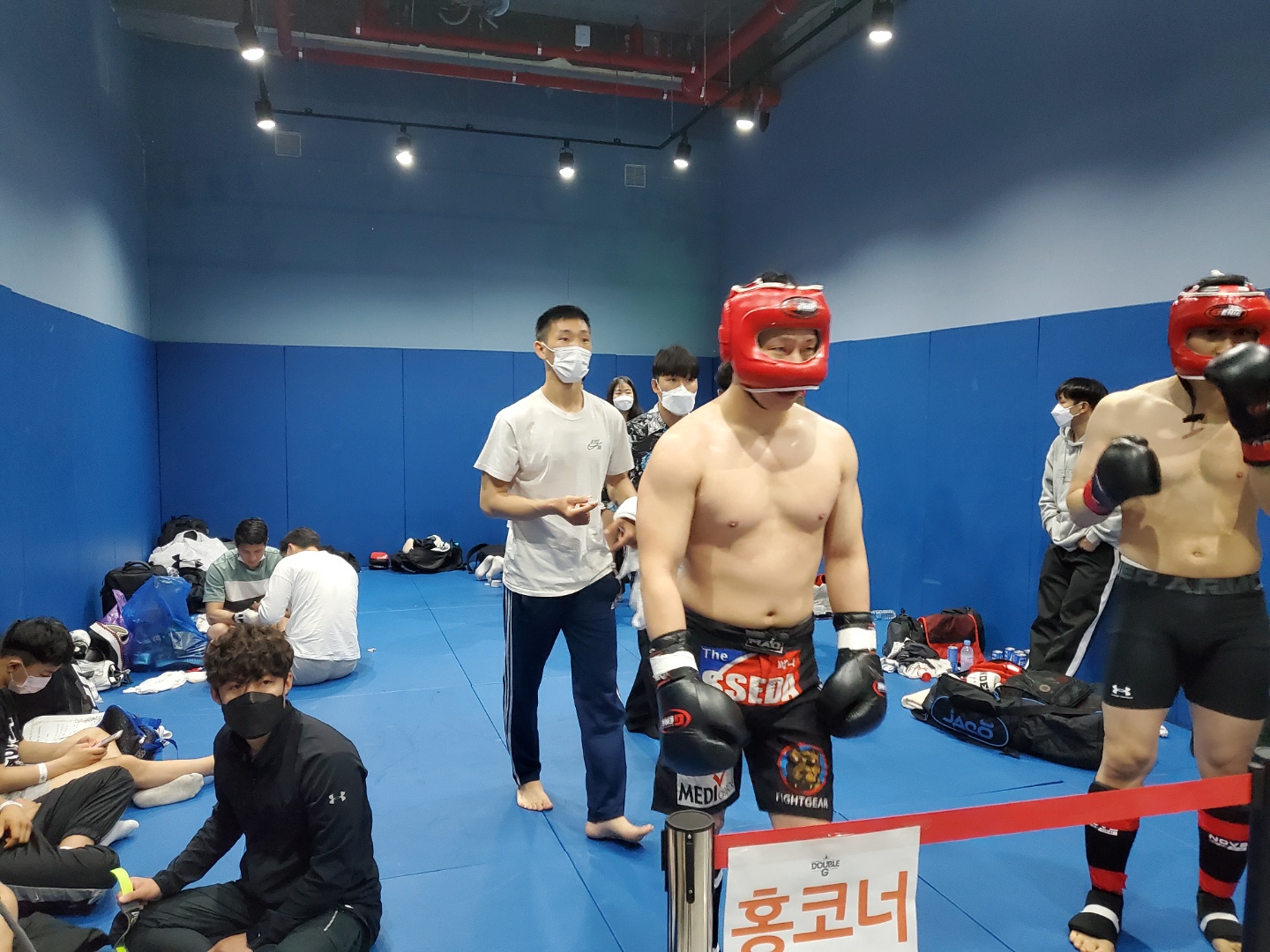 [대기 스페이스에서 대기 중인 홍코너 참가자와 세컨들, 코너별로 구분된 장소가 있어 운영이 용이]