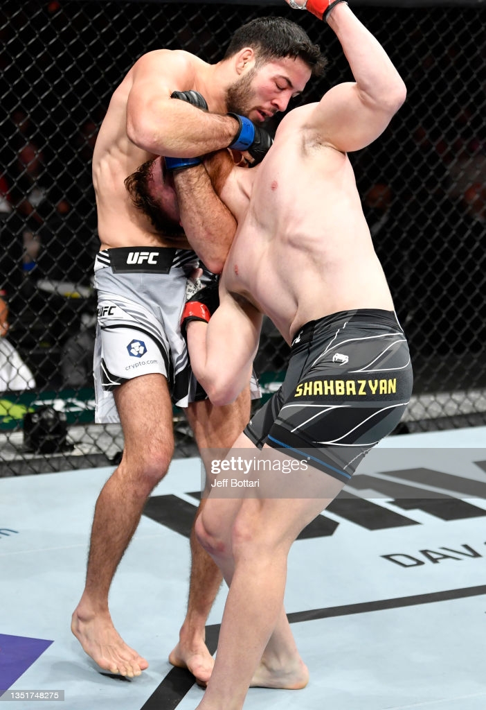 올라운더 나수르딘 이마보프(26, 프랑스)는 챔프 감으로 거론되던 11위 에드먼 쉐바지언(23, 미국)을 원사이드 게임 끝에 파운딩 TKO로 제압, 단체 내 첫 연승을 개시했다. 타격에서도 만만치 않던 이마보프는 1R 중반부터 타이트한 카운터 길로틴으로 상대를 본격적으로 괴롭히기 시작했다. 2R에서도 상대와 길로틴을 주고받던 이마보프는 길로틴 탈출 후 상위 엘보로 상대의 눈에 컷까지 만들며, 안정적으로 상대를 눌러놨다. 결국 이마보프가 크루시픽스를 캐치, 승부를 갈랐다.
