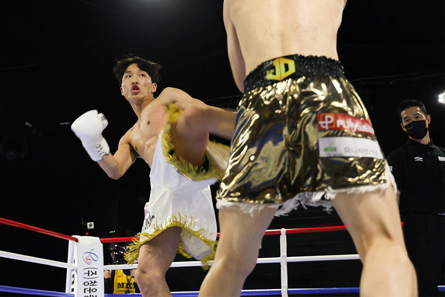 강범준(인천 야크짐)은 인천 무비짐의 다브론 살리모프(우즈베키스탄)를 판정으로 제압, 첫 국제전에서 승리를 거뒀다. 롤링 소버트에 플래쉬 다운을 내주며 경기를 시작했던 강범준은 1R 페인트를 곁들인 하이킥으로 페이스 퍼스트다운을 뽑아내며 기량의 차이를 확인했다. 상대의 킥 캐치와 숏 블로우로 인한 출혈 등으로 2R 초반에도 고생했던 강범준은 꾸준히 적립해둔 로우로 리드를 놓치 않았다. 3R 지친 상대가 큰 공격을 연발, 자멸했고 그대로 경기가 종료됐다.
