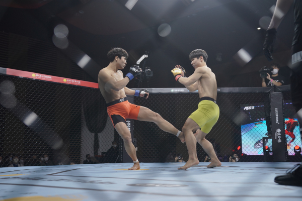 장신의 스트라이커 윤다원(24, MMA스토리)은 꾸준히 푸쉬를 받아오던 체급 강호 이경섭(27, 웨스트짐)을 서브미션으로 완벽제압, 페더급의 새 강자로 떠올랐다. 묵직한 이경섭의 펀치를 허용하기도 했으나 리치의 우위를 살려 이경섭을 초조하게 만들던 윤다원은 1R 후반 잽과 라이트로 다운을 뽑아냈다. 즉시 이경섭으로부터 상위를 뽑으려 했던 윤다원은 이게 여의치 않자 백으로 이동, RNC 그립싸움을 시작했다. 이가 그립을 뜯어내자 즉시 그립을 스위치, 탭아웃 승을 거뒀다.