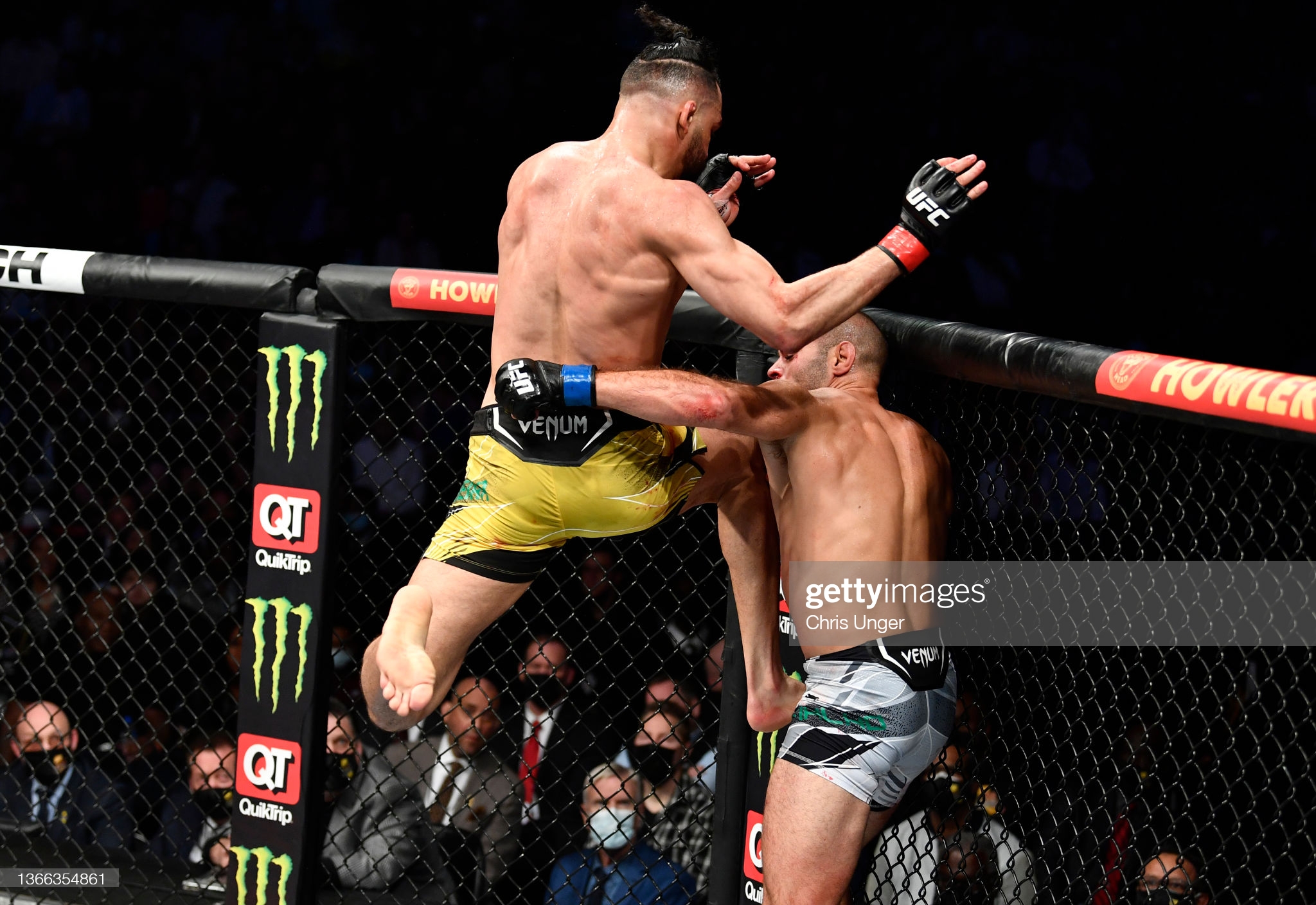 37전의 베테랑 사예드 아와드(38, 미국)은 신예에게 초살 KO패당하는 망신을 당했다. 밴 핸더슨을 포함 네임드들에게 당했던 4연패를 지난 네이트 앤드류즈 전에서 끊어냈던 아와드는 이제 6전째인 신예 크리스 곤잘레스(30, 미국)과 타격전을 벌이던 중 사우스포에서 원투 모션 페인트에 이어 날라온 레프트 하이킥을 그대로 머리에 받아버렸다. 실신은 아니었으나 곤잘레스가 다운된 아와드에 즉시 들러붙어 파운딩을 개시, 경기 시작 36초만에 승부가 갈렸다.