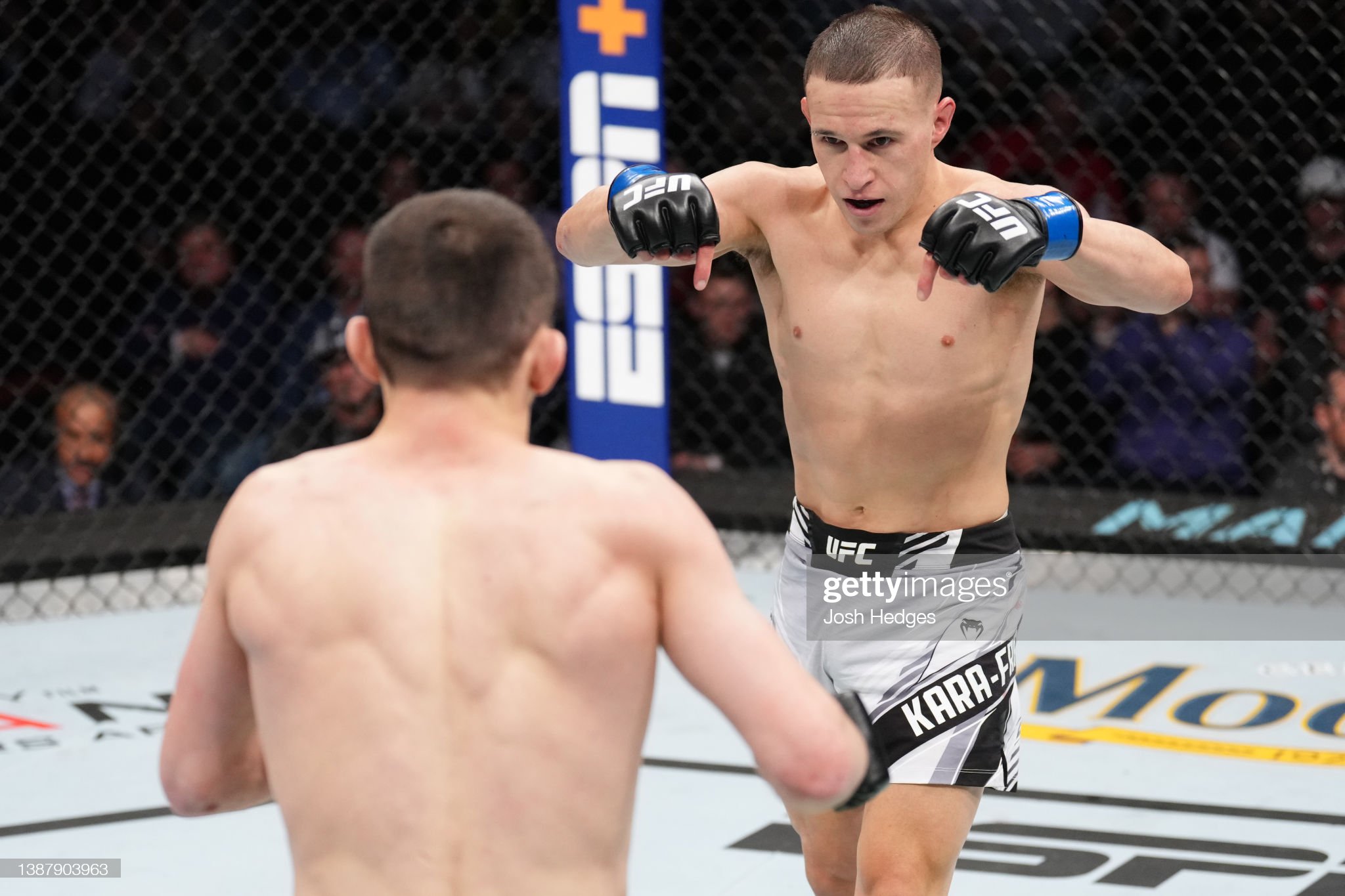 차기 대권 도전이 걸린 동갑내기 플라이급 탑 랭커 간의 일전에서는 최근 치고 올라온 6위 카이 카라-프랑스(29, 뉴질랜드)무패의 2위 아스카 아스카로프(29러시아)를 심판 전원일치 판정으로 잡아내고 타이틀을 목전에 두게 됐다. 초반 테이크 다운 후 스탠딩 백 마운트를 빼앗긴 카라-프랑스는 백 초크 그립을 뜯어내는데 집중했다. 수 차례 클린히트로 2R까지 챙긴 프랑스는 3R에서도 모든 테이크 다운을 전부 방어, 타격 압박으로 저지 3인의 마음을 얻어내는 데 성공했다.