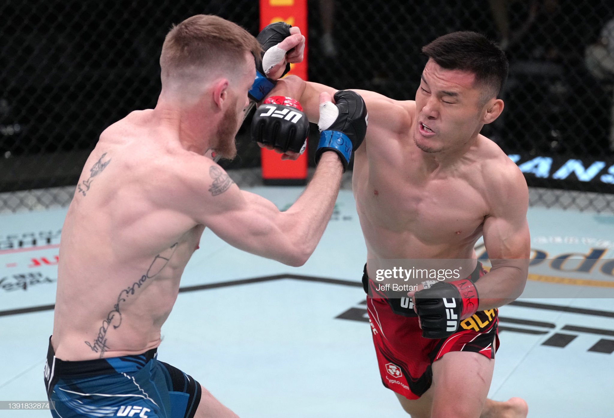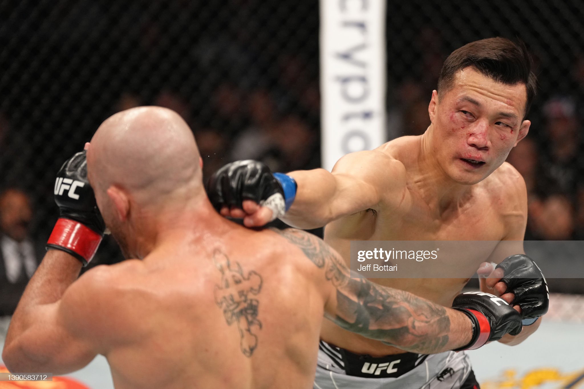 맥그리거의 팀 메이트이자 11승 2패의 강호 월터 코글리안도(30, 아일랜드)를 만난 '매콤주먹' 방재혁(26, KTT)은 뛰어난 타격전의 거리감으로 심판 전원일치 판정승을 거두고 단체 첫 판정승을 기록했다. 방재혁은 가슴을 걷어차는 푸쉬 킥, 틈틈마다 들어오는 상대의 균형을 무너뜨리는 로우 킥 등 다채로운 킥을 활용, 상대의 거리감을 흐뜨러뜨리는 한 편, 공격적인 펀치 러쉬로 거리를 지배, 게임을 리드 했다. 막판에는 태클까지 무데미지로 막은 방재혁에게 판정승이 주어졌다.