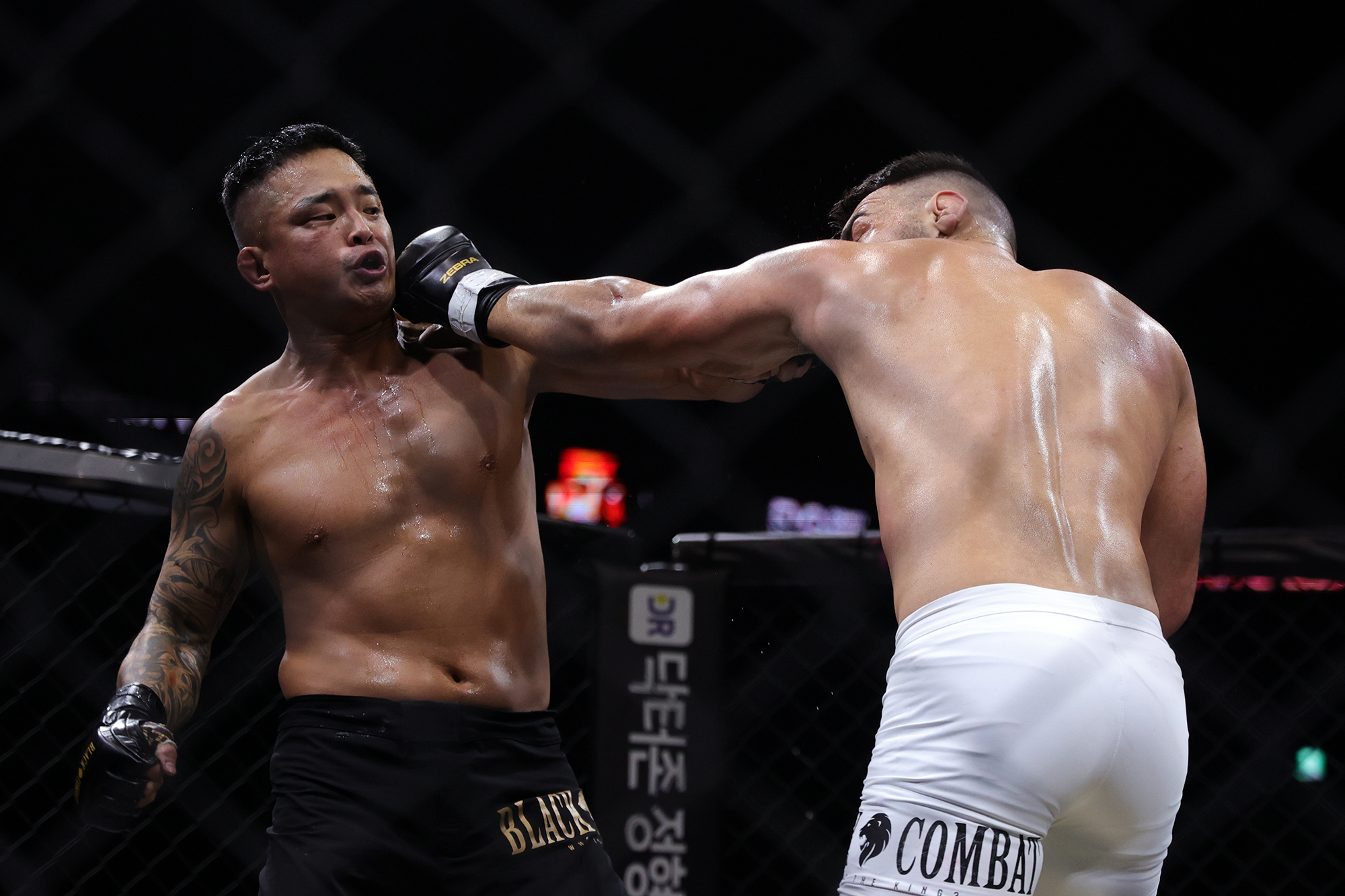 ZEUS FC, GFC 2단체 챔프 출신의 현 블랙컴뱃 라이트급 5위 정한국(33, 팀매드)은 그래플링 우위 끝 서브미션으로 한판 승을 획득, 지난 플라비오 산토스 전 패배의 아쉬움을 달랬다. 전격 이적한 로드FC 전 라이트급 간판스타 문근트슈즈 난딘에르딘(38, 몽골)의 단체 첫 상대로 나선 정한국은 셀프가드의 딥 하프가드 스윕으로 1R 말부터 우위를 이어갔다. 마지막 3R, 또 다시 스윕을 성공한 정한국은 한 차례 트위스터 시도 이후 탑 마운트를 획득, 스크램블 끝에 백에서의 초크로 탭을 받아냈다.