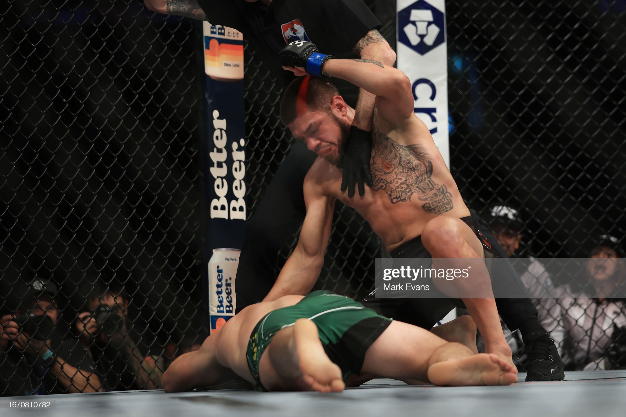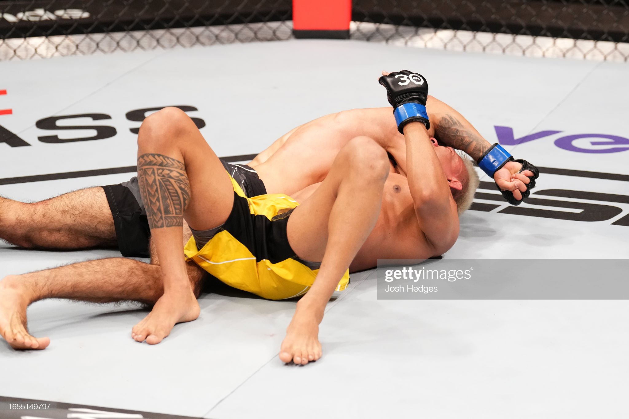 '[대니소의 등 뒤에서 초크를 시도하는 투멘뎀베렐]