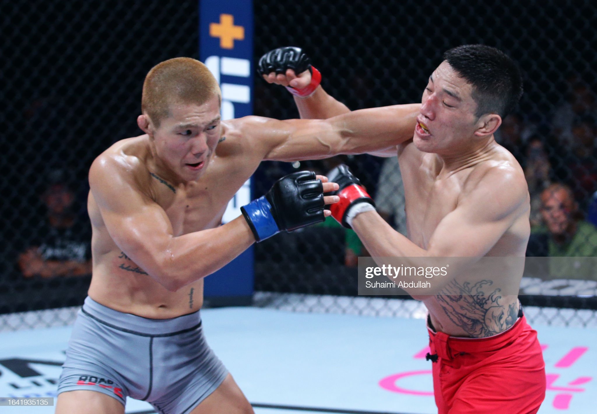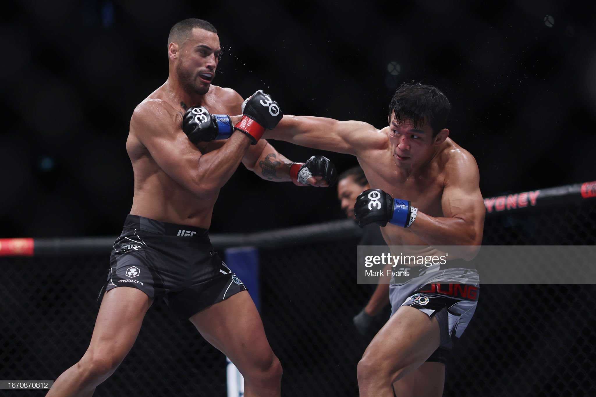 [정다운이 울버그에게 펀치를 날리고 있다]