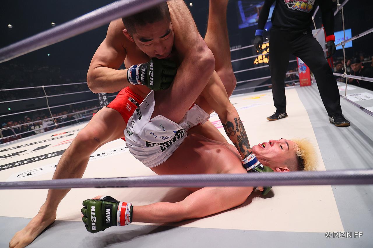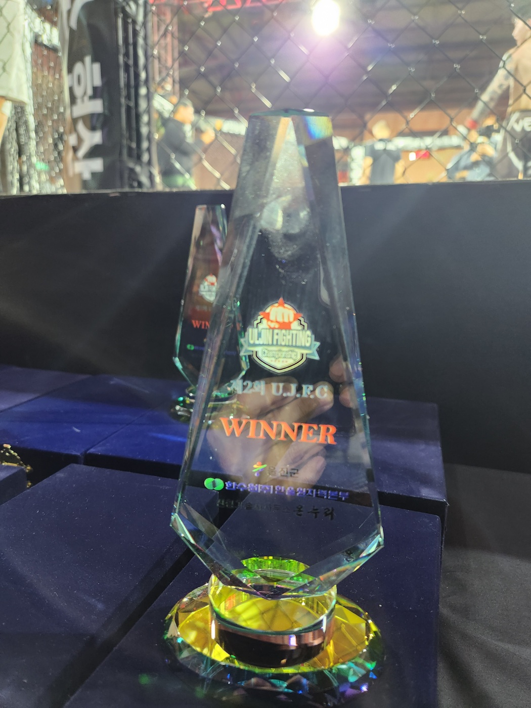 울진의 홈그라운더 최환(36, 파라에스트라 대구)은 일본의 나카조노 유타(30, 팀사무라이)를 서브미션으로 잡아내고 8년만의 승리를 거머쥐었다. 상대 펀치 한 방씩을 나눈 후 클린치를 잡은 최환이 테이크 다운을 성공, 하프에서 탑, 백까지 금세 잡아냈다. 피겨포까지 곁들인 최환의 압박에 나카조노가 롤링을 시도했지만, 결국 최가 RNC를 캐치, 승부를 결정지었다.