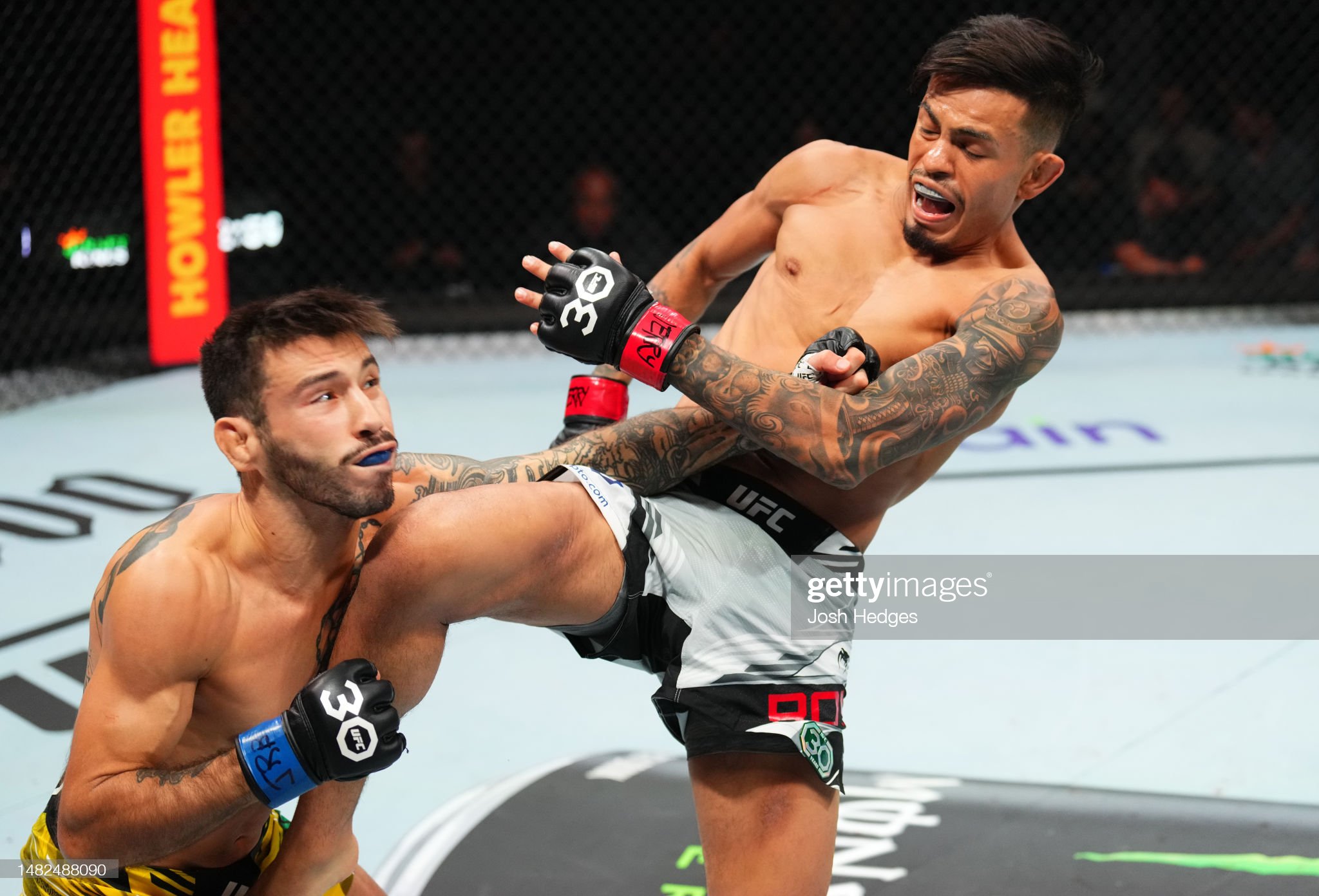 21년 컨텐더 시리즈에서 브루노 코리아를 잡아낸 바 있는 카를로스 'CJ' 베르가라(31, 미국)은 대역전 승리로 홈 팬들을 기쁘게 만들었다. 백 스핀 킥, 레프트, 스프닝 훅 킥 등 상대 다니엘 다 시우바(26, 브라질)에게 첫 라운드에서만 3번의 다운을 빼앗기며 크게 밀렸던 베르가라는 그라운드 스크램블로 암 트라이앵글을 시작으로 흐름을 바꾸기 시작했다. 지속적인 파운딩을 허용한 시우바는 터틀 포지션에서 더 이상 제대로 방어하지 못했고, 레프리 제이슨 허족이 경기를 중단시켰다.