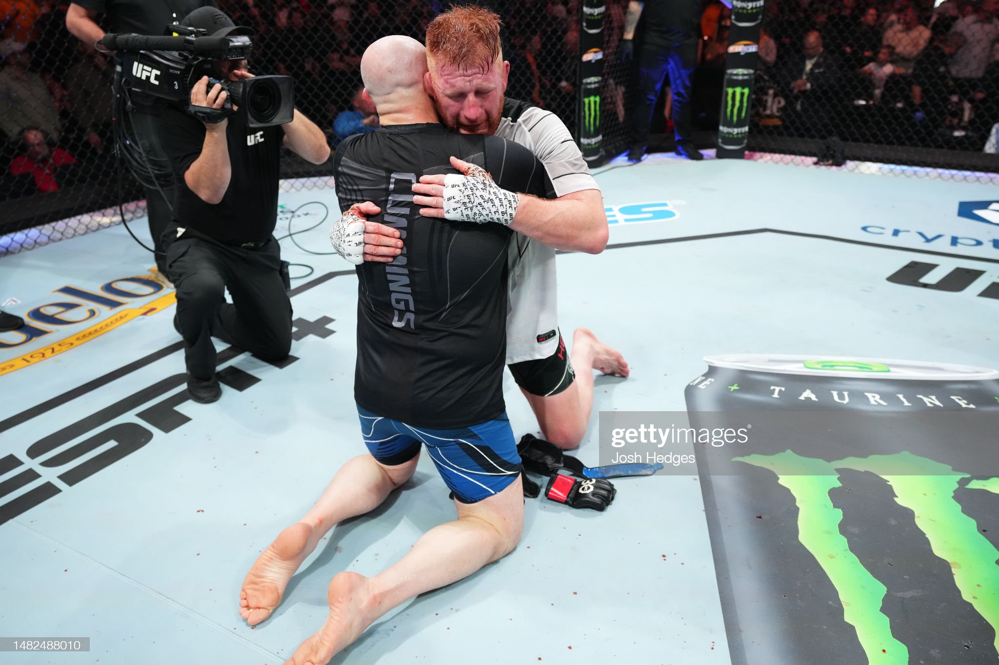 김동현과도 일전을 벌였으며 UFC에서만 29전을 치러낸 베테랑 맷 브라운(42, 미국)은 양동이의 대전 상대였던 코트 맥기(38, 미국)와의 베테랑 더비 전에서 단발 펀치 카운터로 승부를 내버리는 저력을 과시했다. 첫 라운드 4분이 될 때까지 맥기와 접전을 벌인 브라운은 잽과 로우킥으로 거리를 재다 잽으로 들어오던 상대를 단발 카운터 라이트로 제압해 냈다.