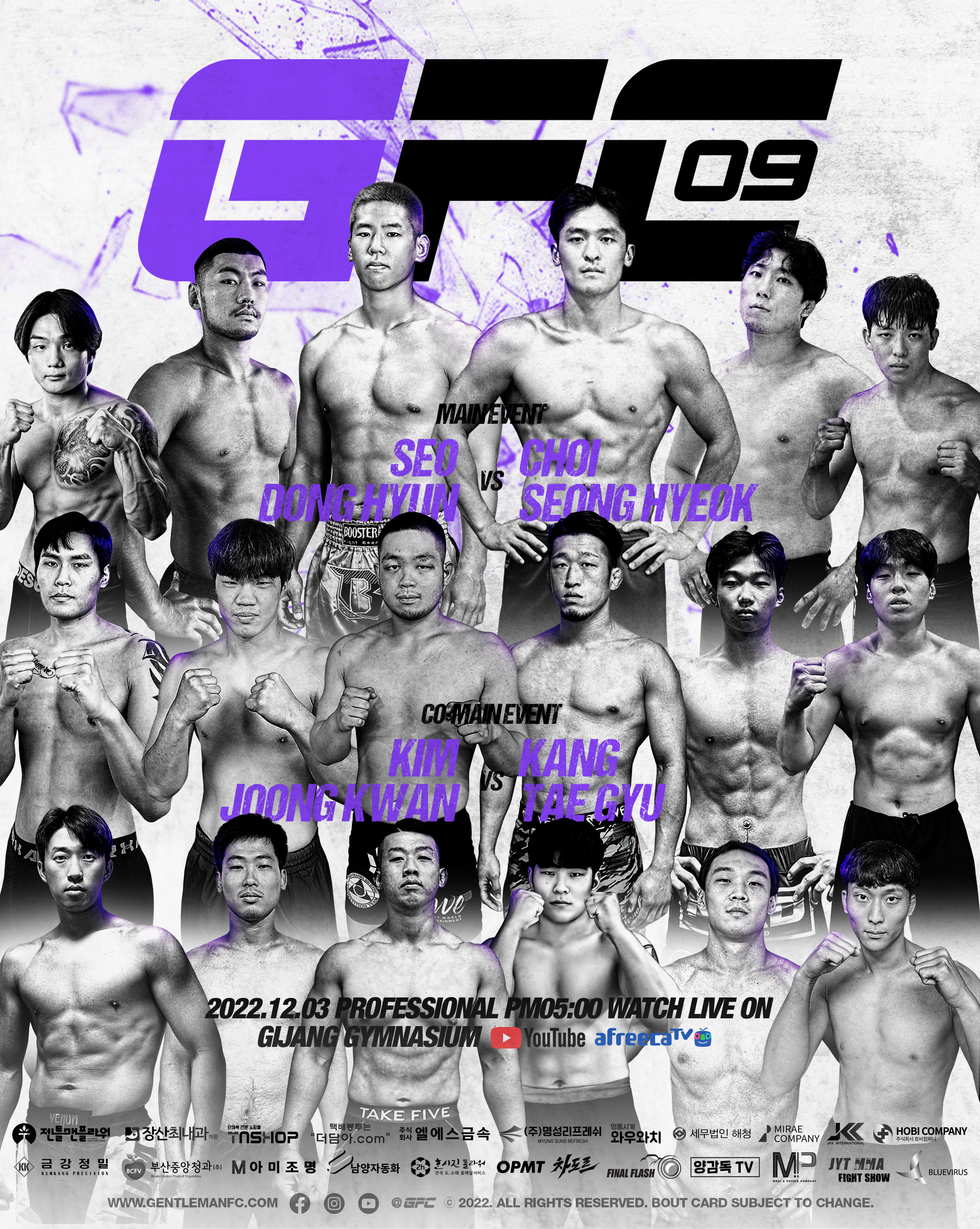 경남권역을 베이스로 신흥 MMA 이벤트 젠틀맨플라워 FC의 6번째 넘버링 대회인 GFC(Gentleman Flower FC) 09가 부산 기장군에 위치한 기장체육관 보조경기장에서 3일 개최됐다.