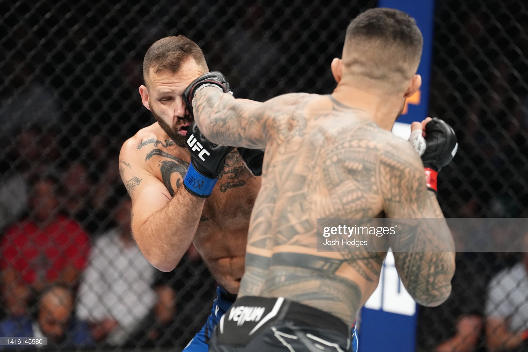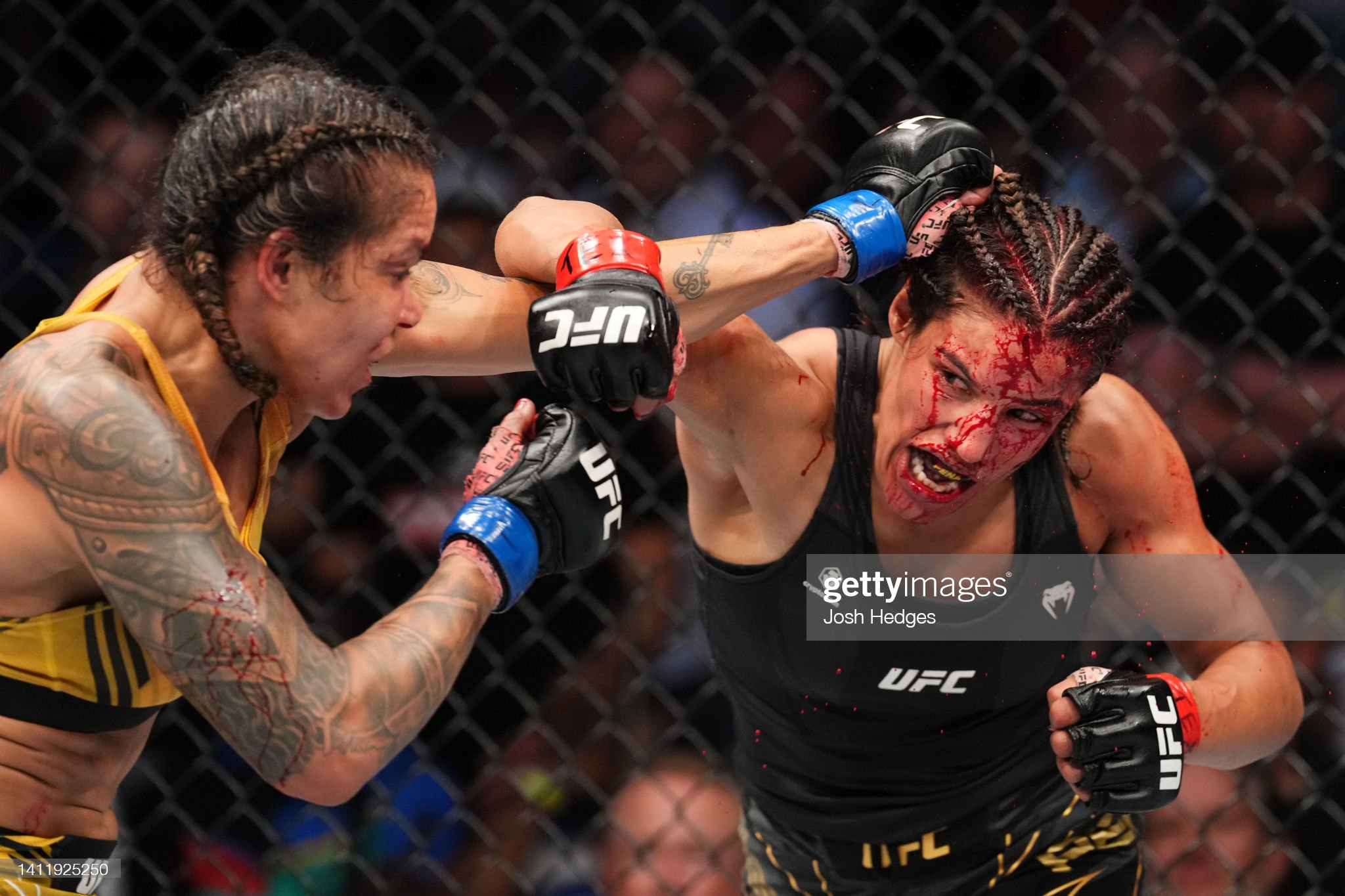 [누네스 피투성이가 된 페냐와 타격을 교환하고 있다]