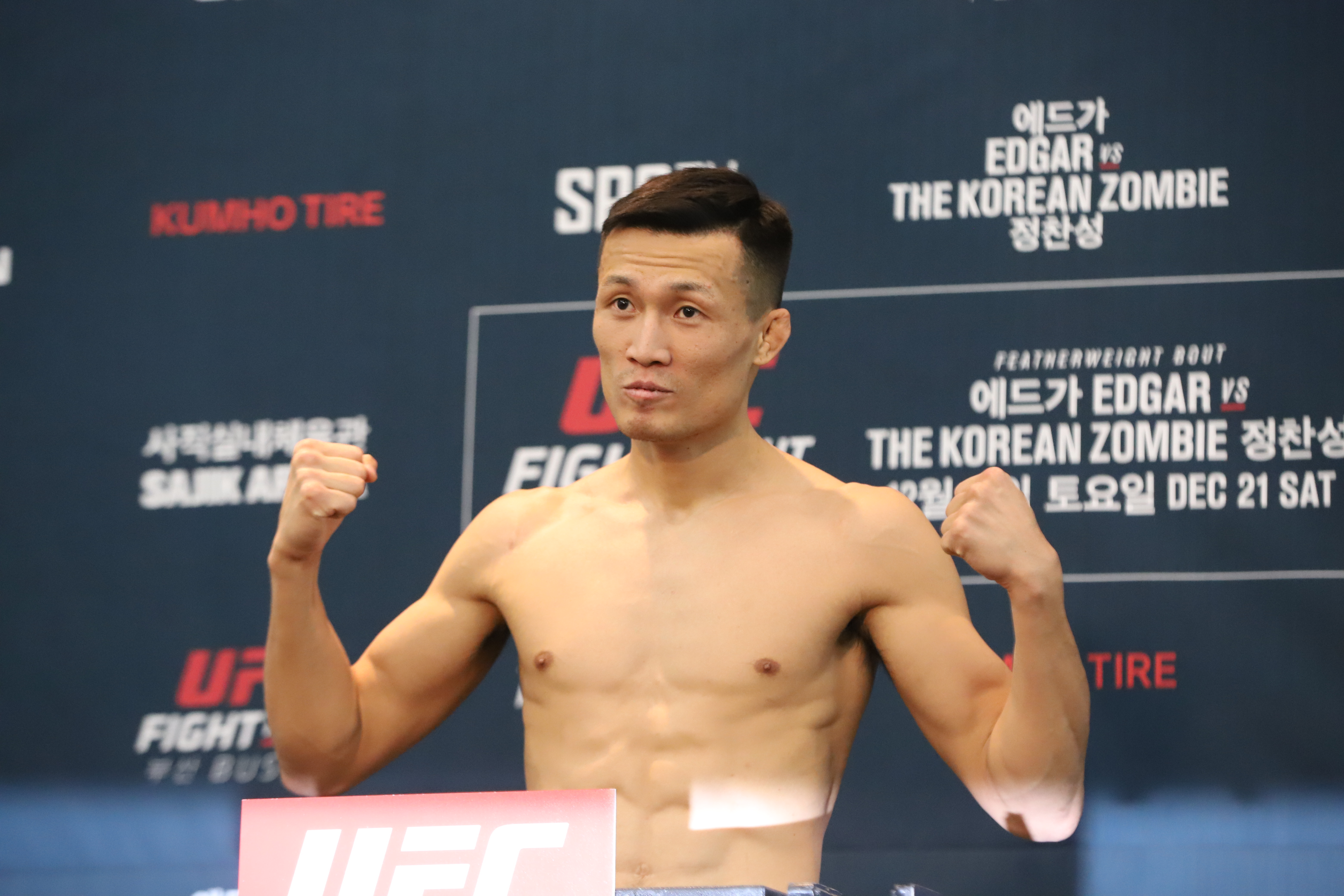 하와이 교포 3세 브래드 타바레스(31, 미국)는 KO패로 2연패에 빠졌다. 무패의 기대주 에드먼 샤바지언(21, 미국)과 타격 전 중 라이트를 턱에 직격당한 타바레스는 급히 일어났으나 차분히 러쉬를 걸어오는 샤바지언의 압박에 케이지 벽으로 밀려났다. 갇힌 타바레스의 안면에 레프트 손바닥 잽을 던져 시선을 가린 샤바지언의 곧바로 이어진 레프트 하이킥이 목이 꽂히자, 타바레스는 그대로 실신, 전투불능이 되어버렸다.
