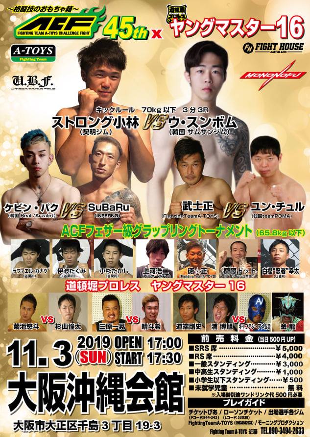 ACF 그래플링 토너먼트 우승자이기도한 주지떼로 박익순(팀 혼)은 시원한 파운딩으로 TKO승을 뽑아냈다. 레슬러 다나카 유키(일본)를 스트레이트로 밀어 붙인 후 싱글렉 테이크 다운 슬램 사이드를 성공시킨 박익순은 플라잉 캐치를 실패하고 그라운드에 떨어진 상대의 안면을 파운딩으로 히트, 찬스를 잡았다. 데미지를 입은 다나카가 안면을 가리며 방어에 집중하는 사이 탑마운트로 옮겨 탄 박익순이, 파운딩 샤워로 레프리의 스탑을 이끌어냈다.