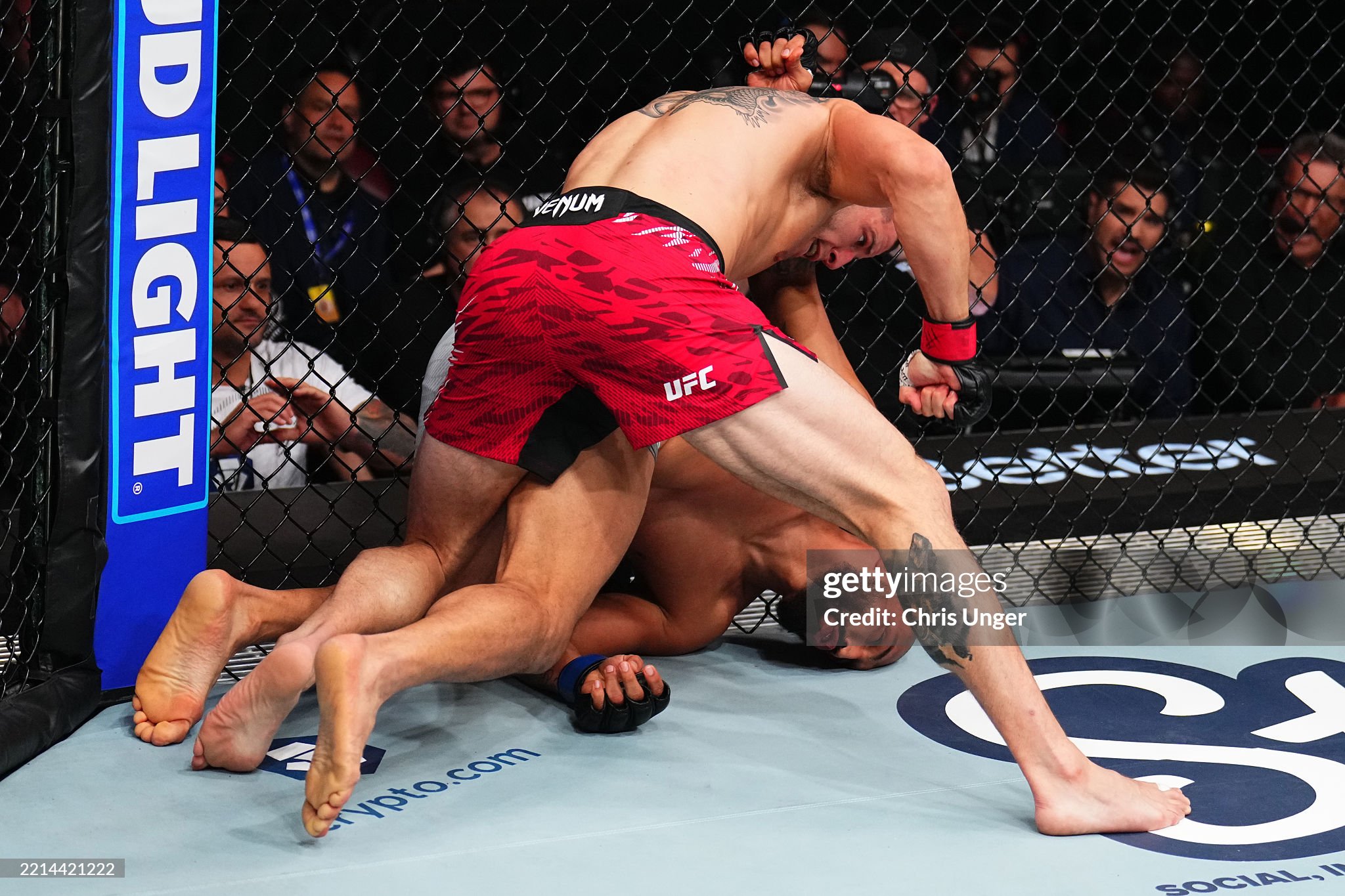 또 한명의 만수르 킬러 제이제이 윌슨(27, 뉴질랜드) 초반 버넬의 테이크 다운 시도를 버텨낸 윌슨은 원투와 킥 콤보, 클린치에서 엘보와 플라잉 니킥, 테이크 다운과 상위 압박까지 뽑으며 1R을 챙길 수 있었다. 2R 시작하자마자 테이크 다운을 만든 윌슨은 다스 초크, 엘보 등으로 라운드 내내 버넬을 눌러둘 수 있었다. 3R 시작 직후 더블 렉을 히트, 다시 한번 상위를 잡은 윌슨은 라운드 후반 해머 피스트 샤워를 시전, 움직임이 없는 버넬로 부터 막판 TKO를 따낼 수 있었다.