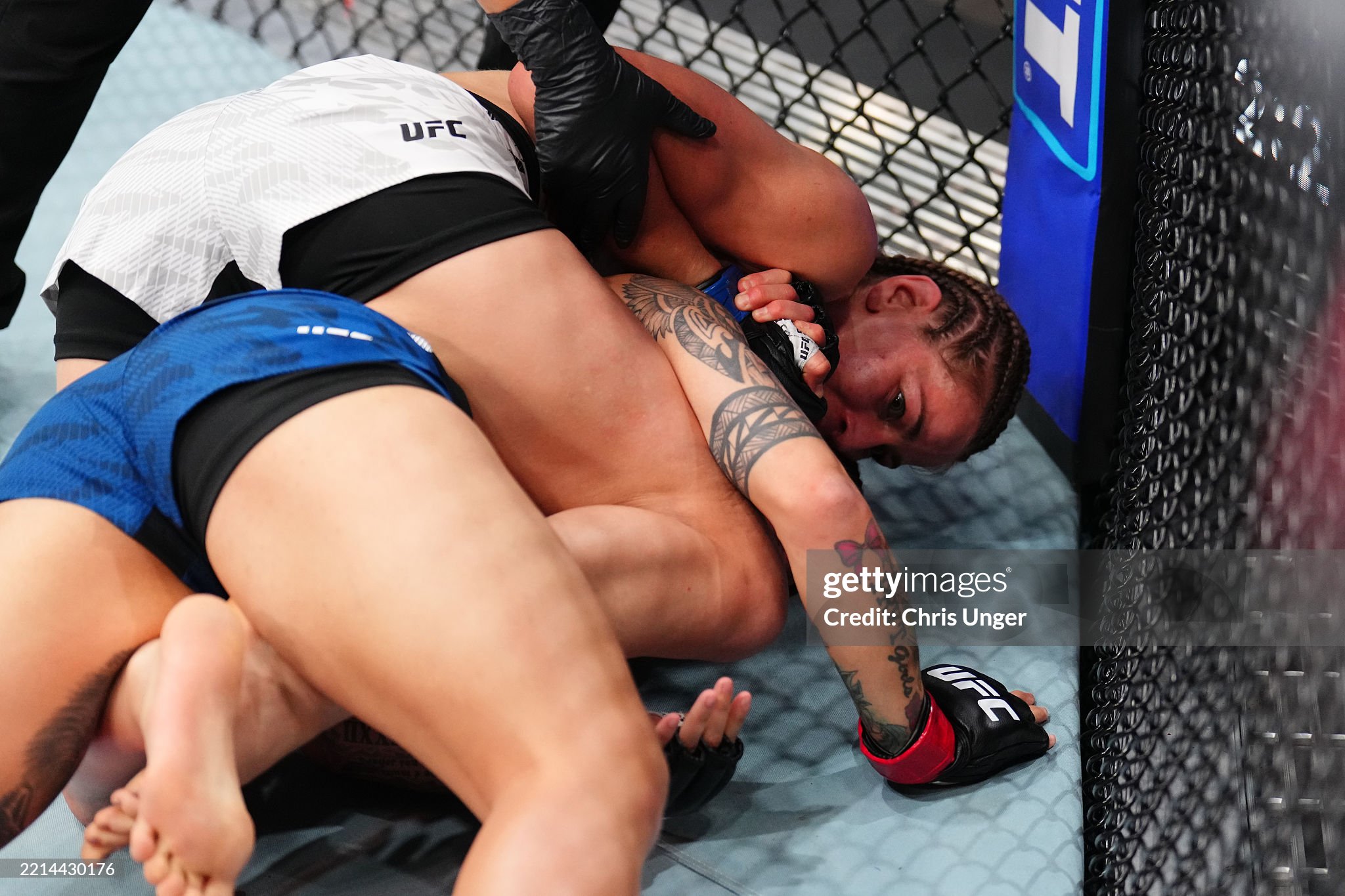 플라이급 7위 자스민 자스다비시어스(36, 캐나다)는 3연승을 노리던 스트로급 전 여왕이자 플라이급 9위 제시카 안드라지(33, 브라질)를 완파, 5연승을 거두고 타이틀을 시야에 넣을 수 있게 됐다. 신장의 우위를 살린 타격으로 상대를 압박해 나가던 자스디비시어스는 레프트와 라이트를 연달아 히트, 더블 렉을 통해 백을 캐치한 자스디비시어스가 슬램을 뽑아냈다. 부상이 있었는지 하위에서 이렇다할 대응이 없는 안드라지의 백을 차지한 자스다비시어스가 레그 훅을 곁들인 RNC로 탭까지 뽑아냈다.