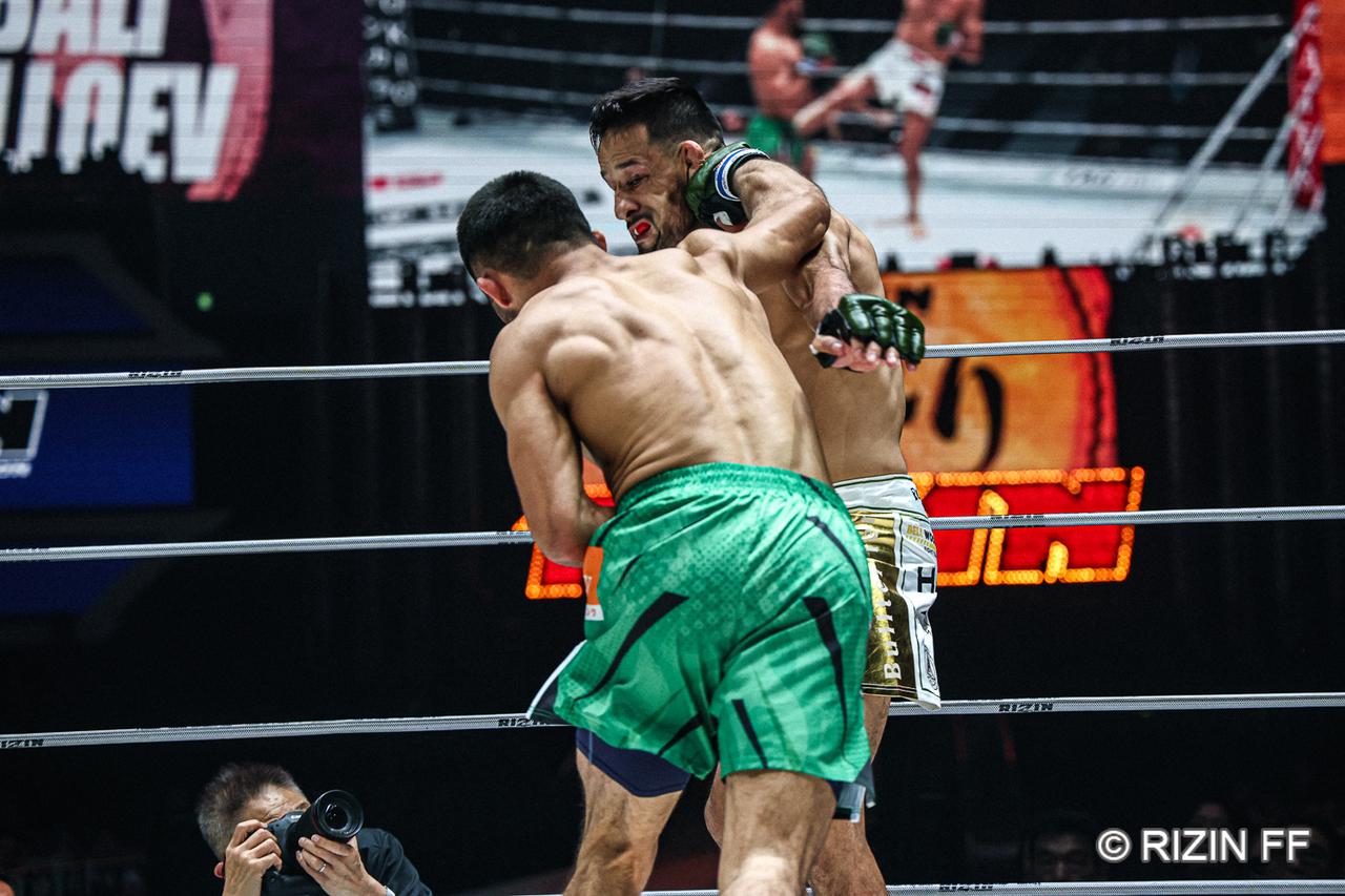페더급 챔프 클레벨 코이케(35, 일본)와 만난 무패의 라쟈발리 쉐이둘라예프(24, 키르키즈스탄)는 두 발의 펀치로 클레벨을 KO시키고 라이진 페더급의 새로운 주인이 됐다. 소요시간 62초. 걸어가며 펀치를 내며 클레벨을 압박하던 쉐이둘라예프는 순식간에 링 줄을 등에 대고 있던 클레벨의 거리 조절용 킥을 회피, 오버 핸드 라이트 두 방의 클린히트로 클레벨을 페이스 퍼스트 성 실신을 뽑아냈다. 파운딩 두 방에 깨어난 클레벨이 레프리에게 항의했지만 이미 승부는 결정난 뒤였다.