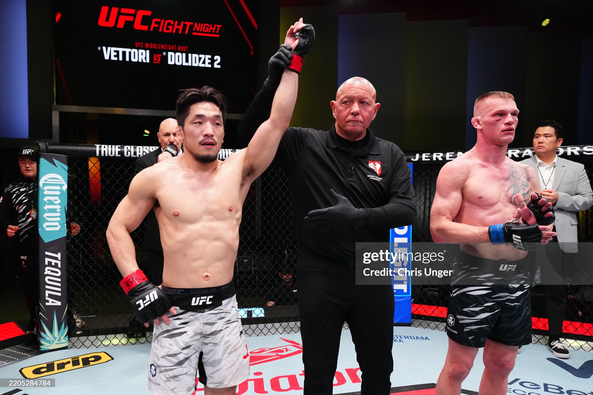 01경기: 네이던 캘리 < 김태균 (리어네이키드 초크 1R 4:53)
