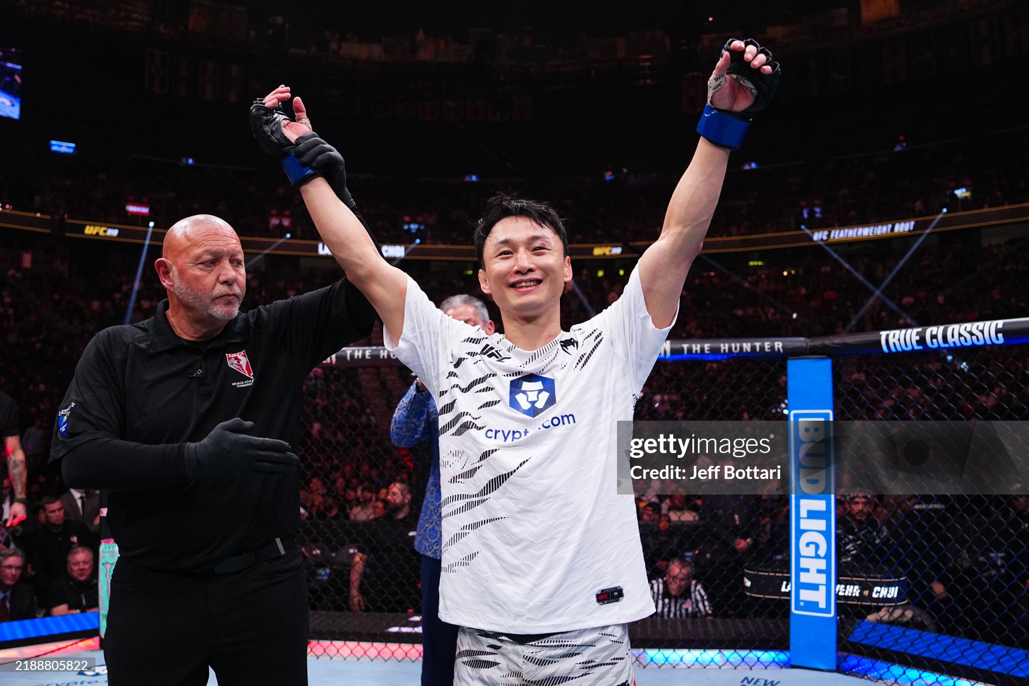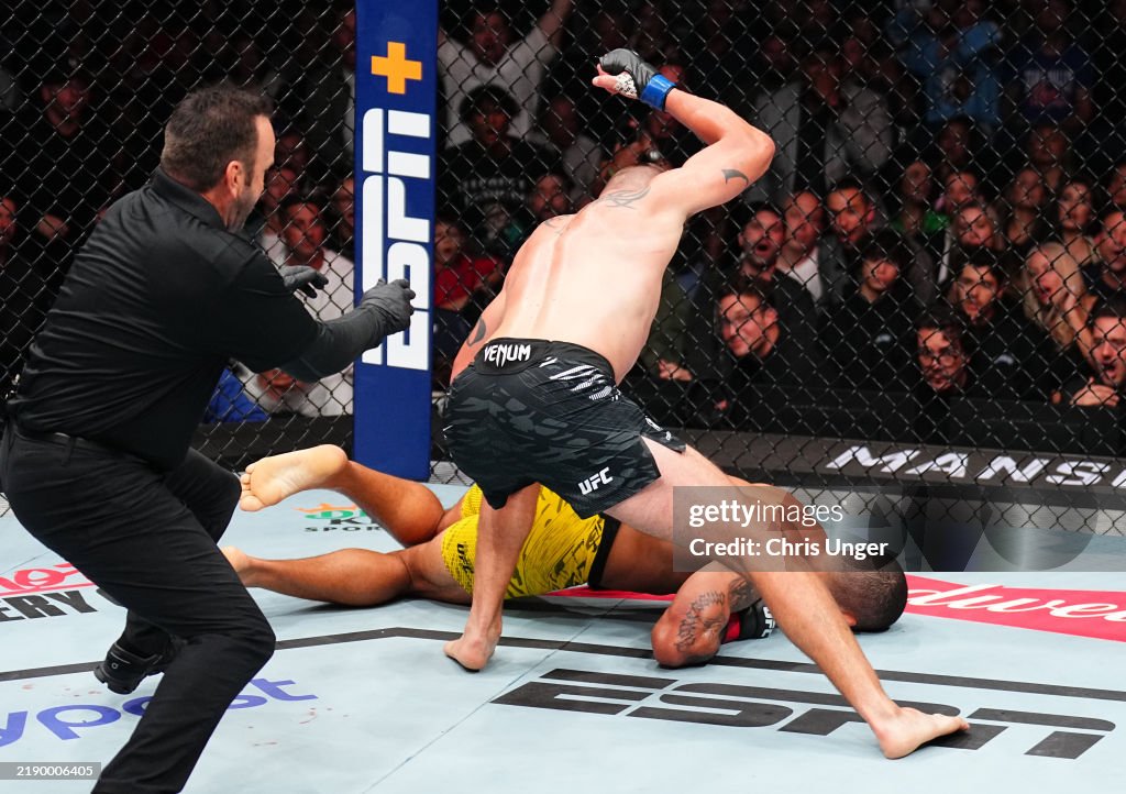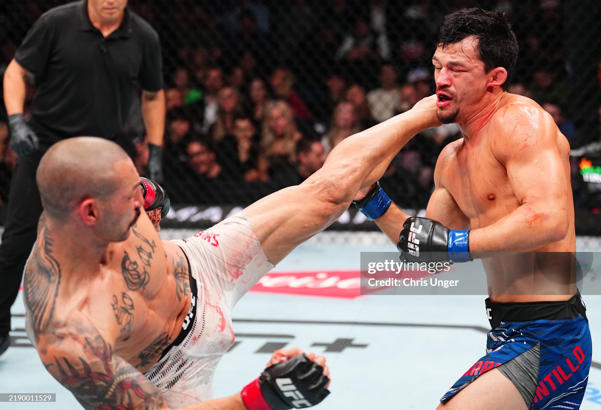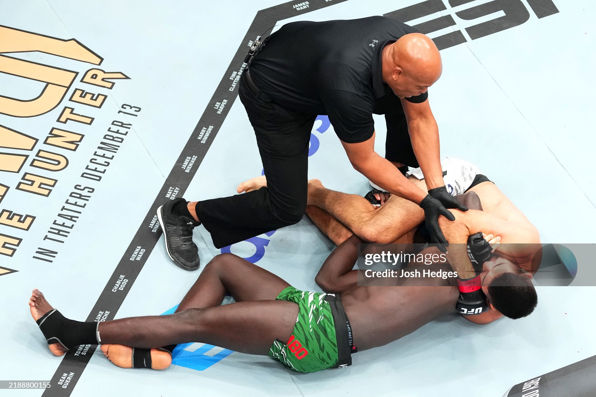 긴급 오퍼를 받고 들어온 라이트헤비급 13위 보그단 구스코프( 32, 우즈베키스탄)는 PFL 리거로 3연승 중이던 빌리 엘레카나(29, 미국)를 서브미션으로 격파했다. 1R 초반, 싱글 렉 태클에 테이크 다운을 허용하며 불안한 스타트를 끊었던 구스코프는 1R 상당시간 컨트롤 당했으나 막판 스윕 후 백 초크로, 흐름을 내주지 않았다. 2R 중반 타격에 몰리며 케이지를 등지기 시작한 엘레카나가 눈을 만지자 압박을 시작한 구스코프가 바디샷 후 압박 끝에 길로틴으로 탭을 받아낼 수 있었다.