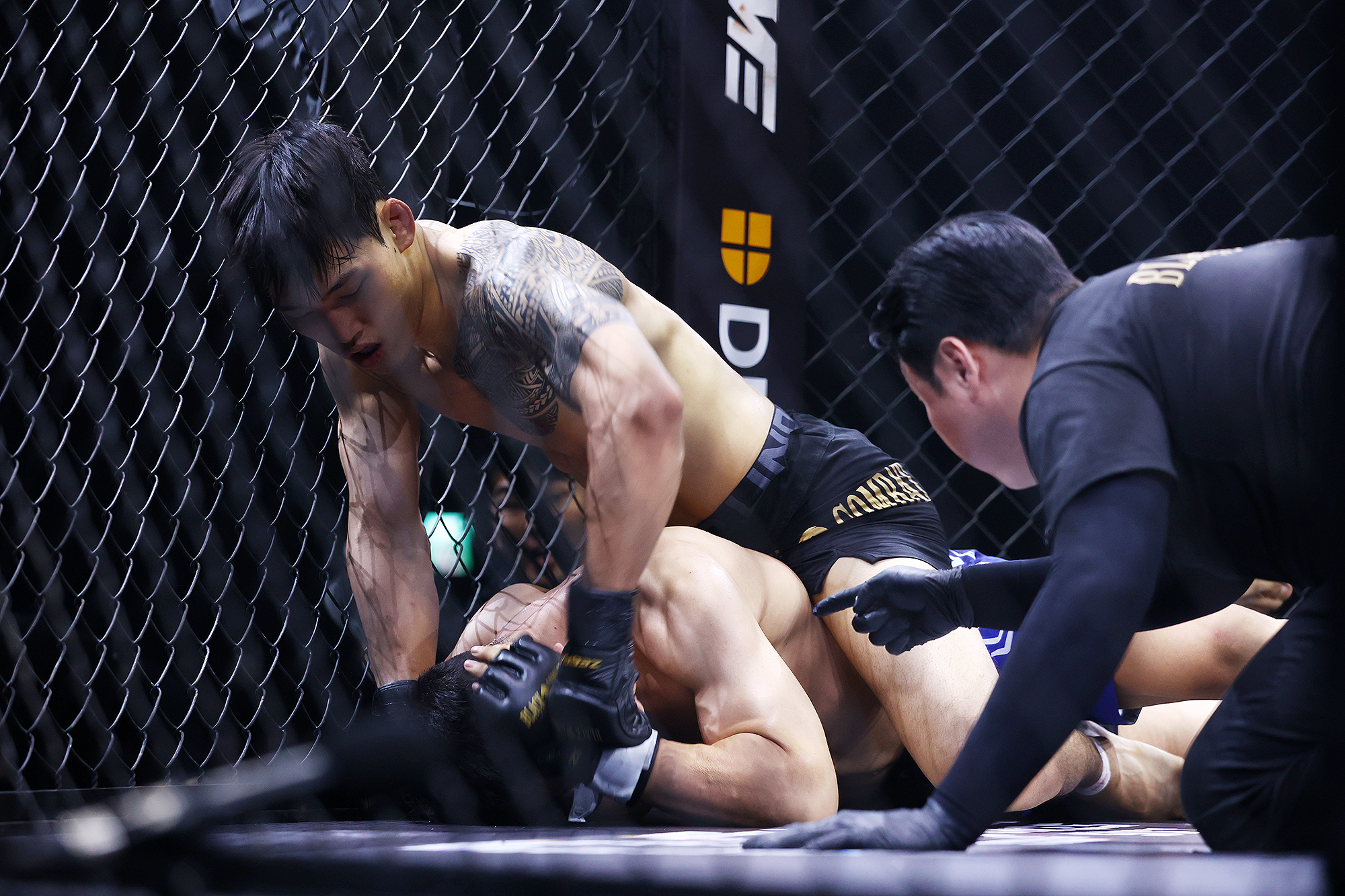 01경기: 에반 엘더 > 대리어스 플라워스 (암 트라이앵글 초크 2R 1:46)