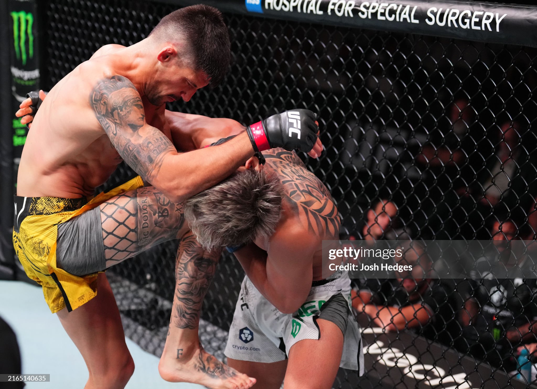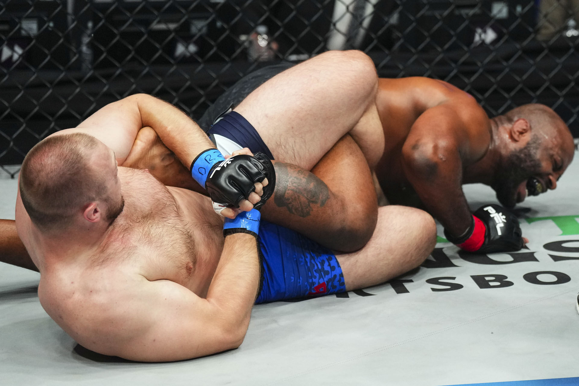 헤비급 랭킹 9위를 마크 중이던 세르게이 스피박(29, 몰도바)는 체급 8위 마르친 티뷰라(38, 폴란드)와의 2차전에서 서브미션으로 승리, 4년만의 리벤지 달성으로 지난 시릴 간 전 패배의 아쉬움을 달랠 수 있었다. 초반부터 가드를 뚫는 펀치 러쉬로 클린치 압박을 시작했던 스피박은 스크램블 끝에 상위를 내줬으나, 하프가드에서의 기습적인 암 바로 상대 티뷰라의 구두 탭을 받아내는데 성공, 퍼포먼스 보너스 5만 달러까지 챙겼다.