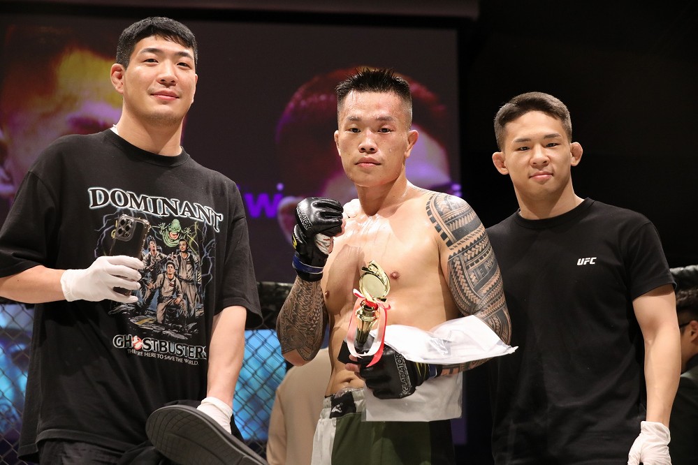 RTU 준우승자 카자마 토시요미(27, 일본)는 단체 첫 승을 노리던 컨텐더 리거 하랄람푸스 그리고리우(32, 사이프러스)에 서브미션으로 역전승을 거뒀다. 3점 포지션 니 킥으로 포지션을 잃었지만 스윕과 그라운드 컨트롤로 첫 라운드를 챙긴 카자마는 2R 시작 직후 상대의 러쉬에 밀리다 레프트를 허용, 다운을 내줬다. 엘보 파운딩이 이어졌으나, 당상대를 하프가드에 잠근 카자마가 기습 트라이앵글을 캐치, 탭을 이끌어냈다. 이 역전극으로 카자마는 퍼포먼스 보너스까지 챙겼다.