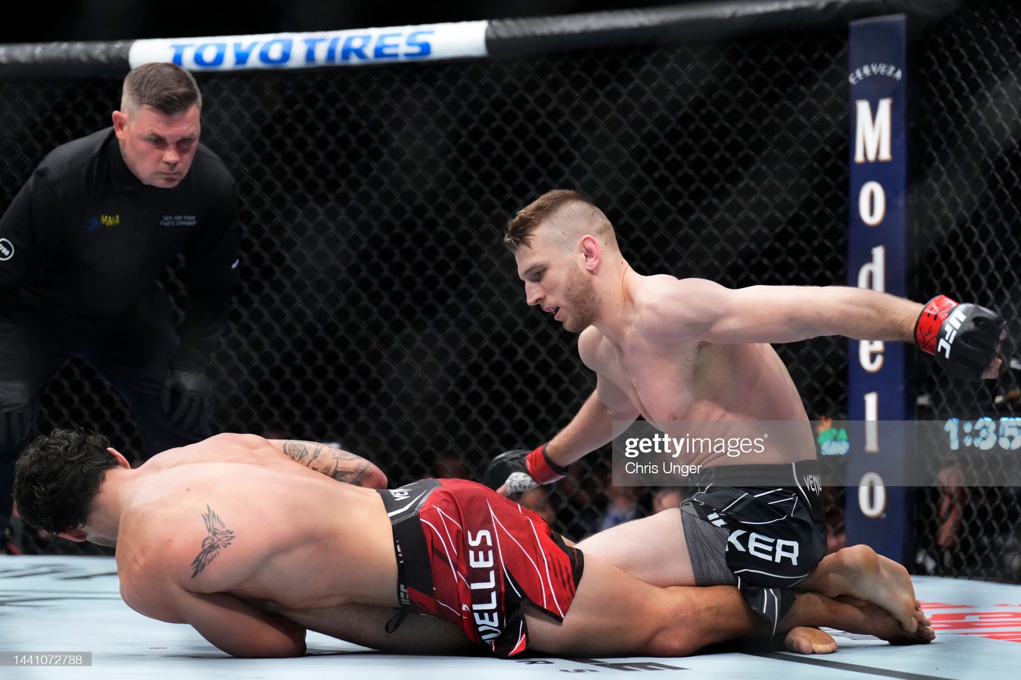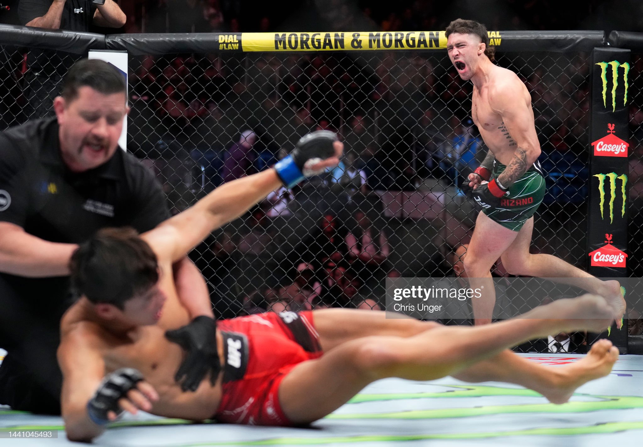 '유효타 싸움' 이 된 올해 UFC 마지막 경기에선 전 타이틀 챌린저이자 미들급 3위 제러드 캐노니어(38, 미국)가 타이틀 도전자 결정전에서 미끄러진 7위 션 스트릭랜드(31, 미국)를 스플릿 판정으로 누르고 타이틀 로드의 재정비에 나설 수 있게 됐다. 캐노니어는 정평이 난 잽을 창과 방패로 거리싸움에 나선 상대에 맞서 로우킥과 바디 등 다채로운 타격으로 맞섰다. 막판까지 거의 유효타 수에서 차이가 없는 채로 경기가 종료됐고, 저지 2인이 캐노니어의 손을 들어주었다.