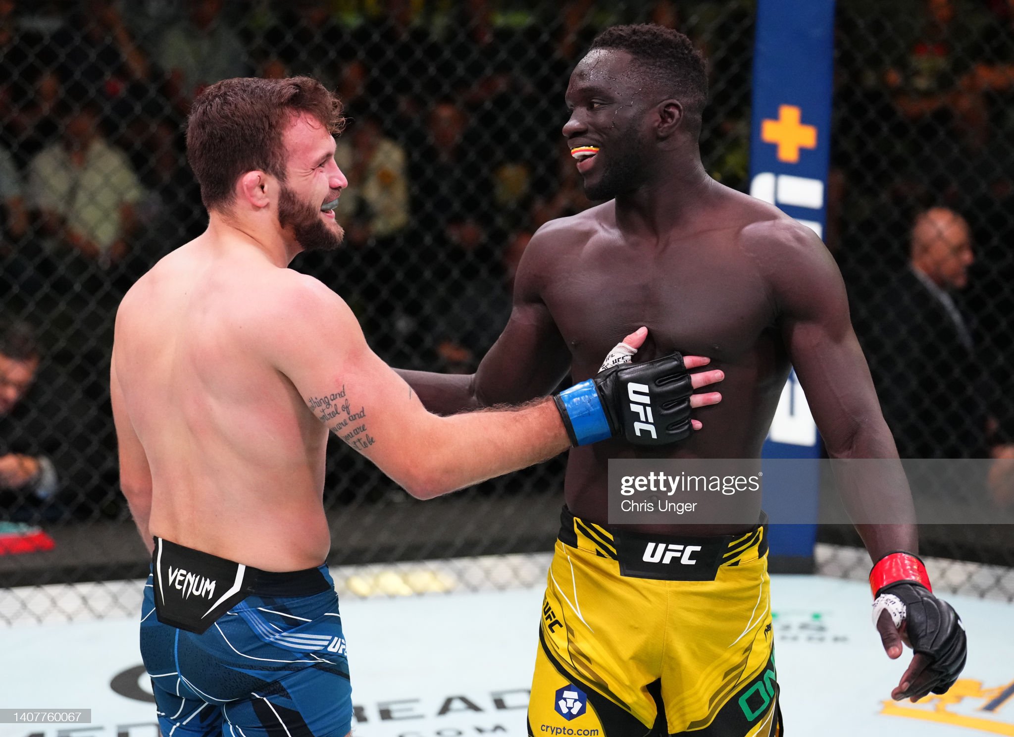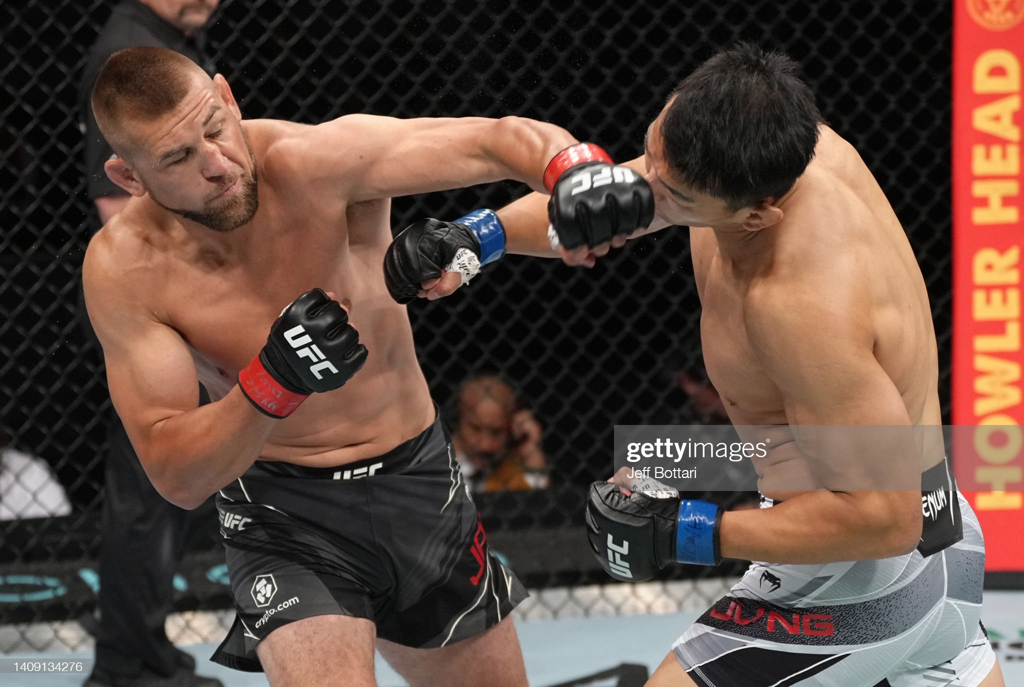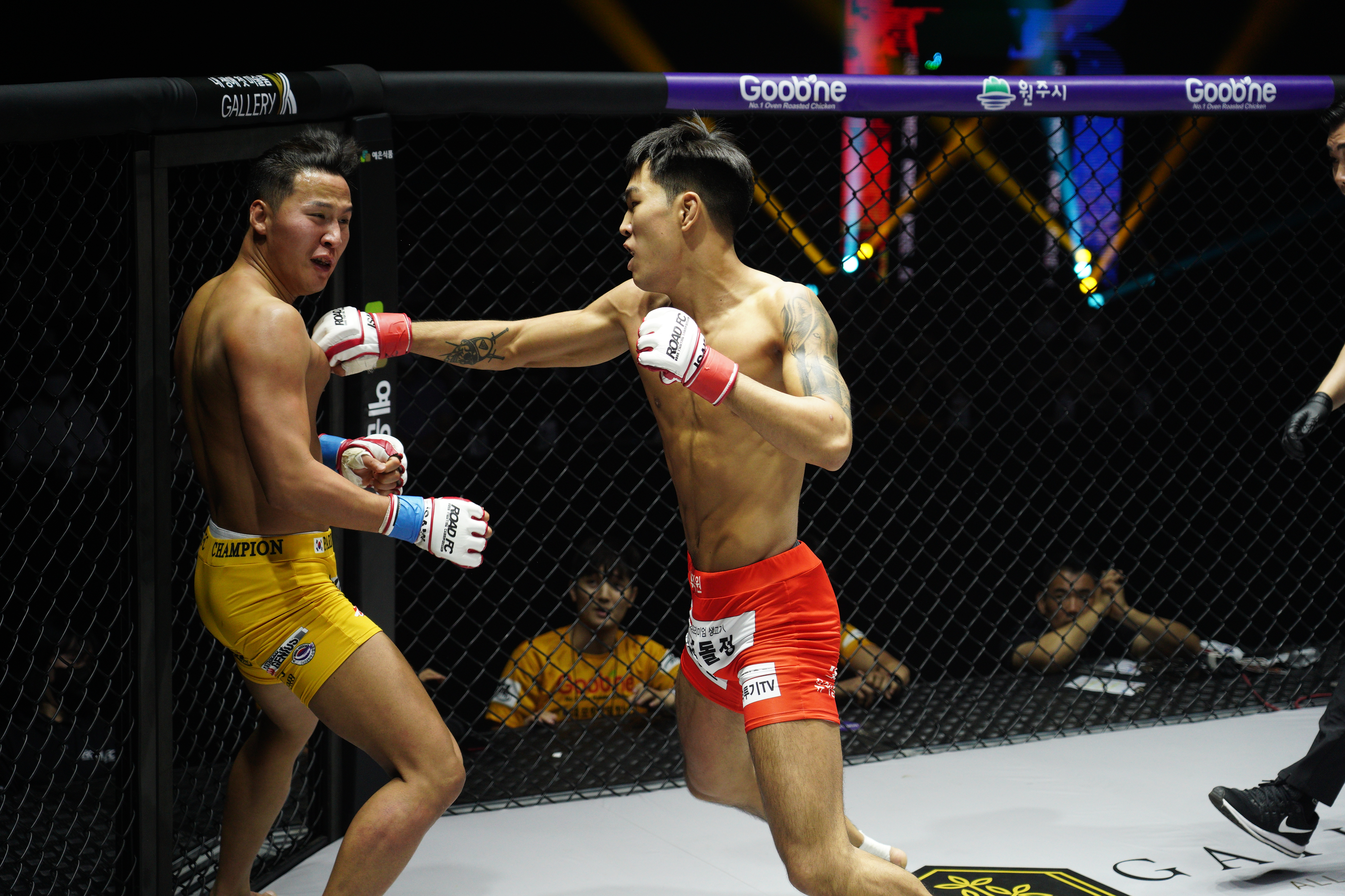 최근 로드에서 2연패로 문근트슈즈 '오카' 난딘에르덴(35, 팀파이터) 은퇴를 번복하고 돌아온 소방관 신동국(40, 충주MMA/팀포스) 신동국의 산발적인 훅이 히트하긴 했으나, 백스핀 킥과 백스핀 블로우, 로우킥을 곁들여 꾸준히 타격 압박으로 첫 라운드를 가져간 오카는 두 번째 라운드에서도 타격 압박을 계속, 라운드 막판 펀치로 플래쉬 다운을 만들기도 했다. 3R, 재차 펀치 카운터로 플래쉬 다운을 만든 오카의 원투가 신동국을 세 번째 다운시키고, 합장포즈로 경기를 마무리했다.