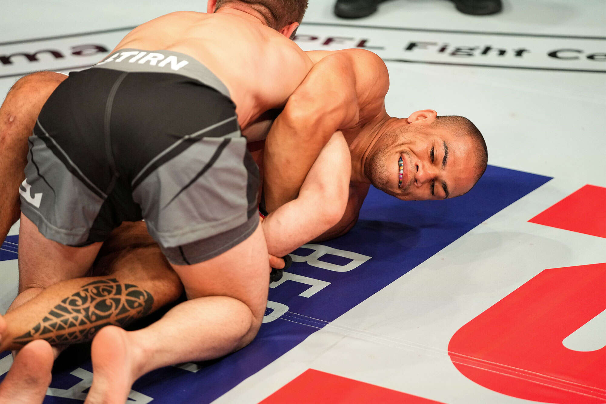 [싱글 렉을 거는 오오시마에게 저항하는 박시우 사진=MMAPLANET]
