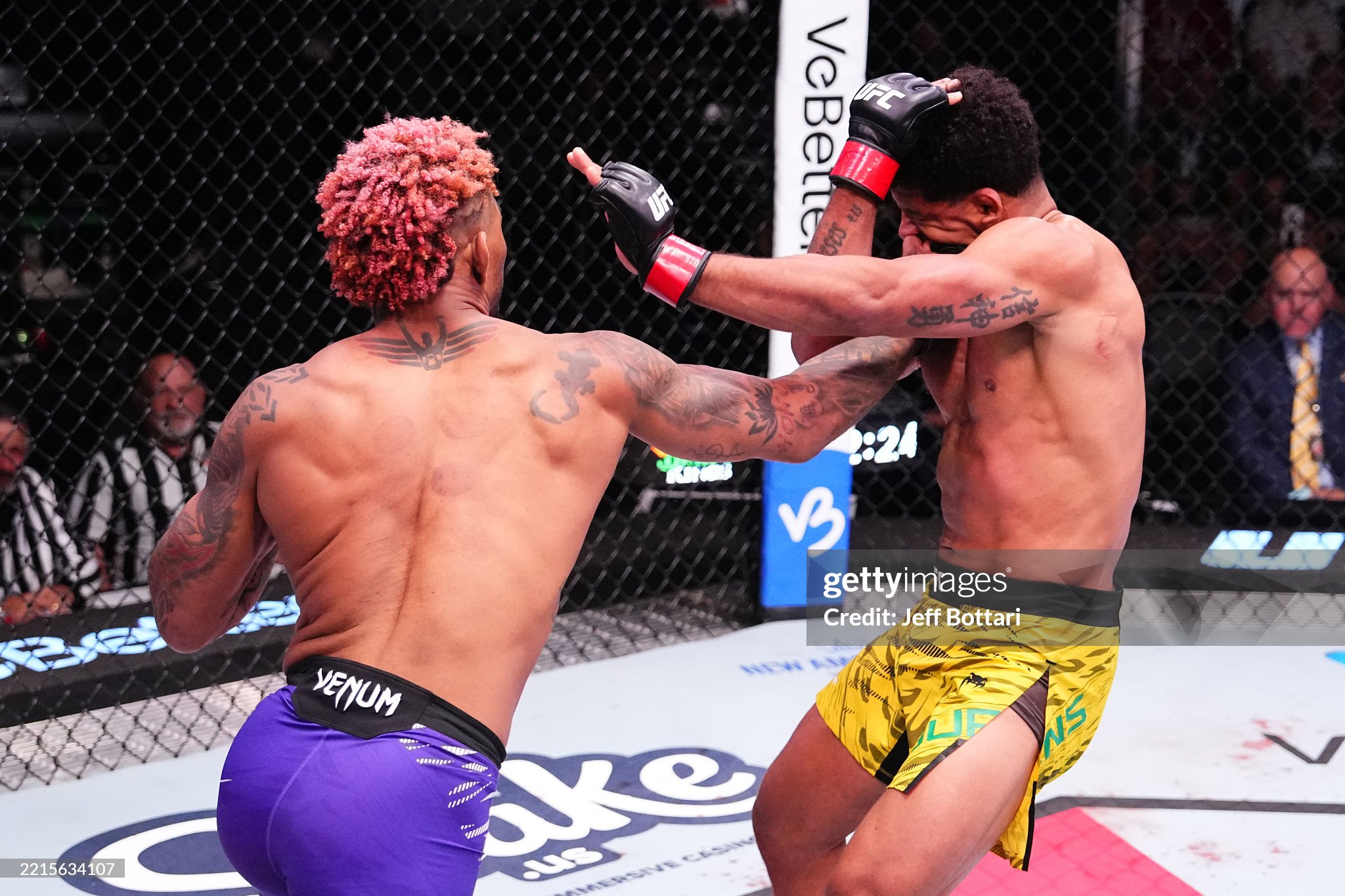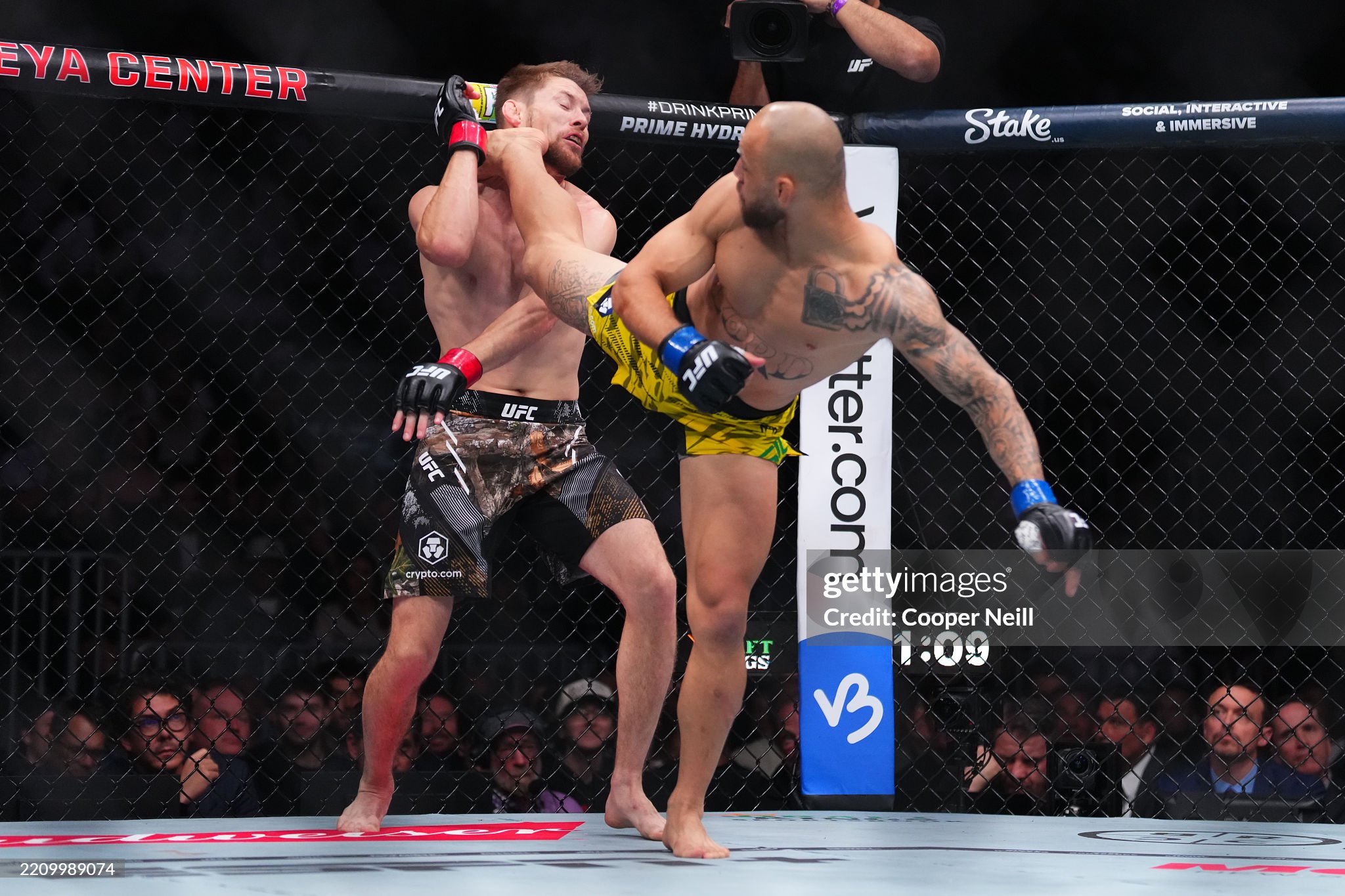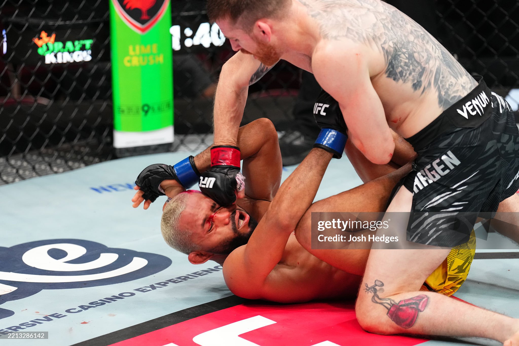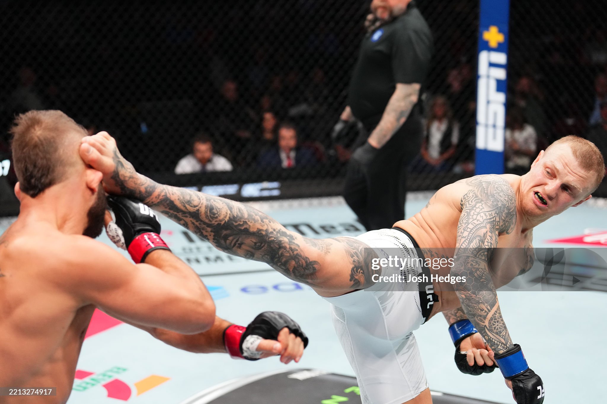 [존슨이 킥으로 스티븐스의 머리를 걷어차고 있다]