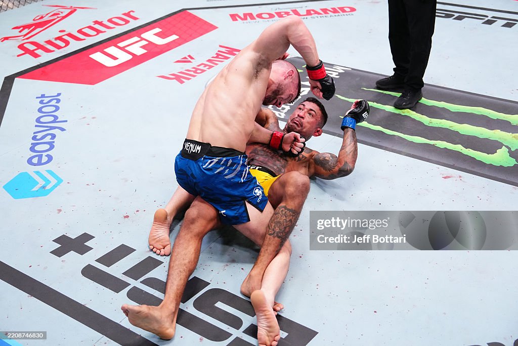 2연패로 주춤했던 라이트급 13위 랭커 베누아 생 드니(29, 프랑스)는 급오퍼로 UFC에 복귀한 카일 프레폴렉(35, 캐나다)을 서브미션으로 잡아냈다. 초반부터 테이크 다운을 시도한 생 드니는 일찌감치 테이크 다운을 성공 첫 라운드 내내 초크와 상대의 백에서 시간을 보내며 압도적인 그라운드를 피력했다. 2R 초반 프레폴렉에게 클린 히트를 내줬지만 클린치로 붙은 생 드니가 엘보와 니로 데미지를 안겼고 백에서 다시금 상대를 테이크 다운시킨 생 드니가 곧바로 암 트라이앵글을 캐치, 탭을 이끌어냈다.