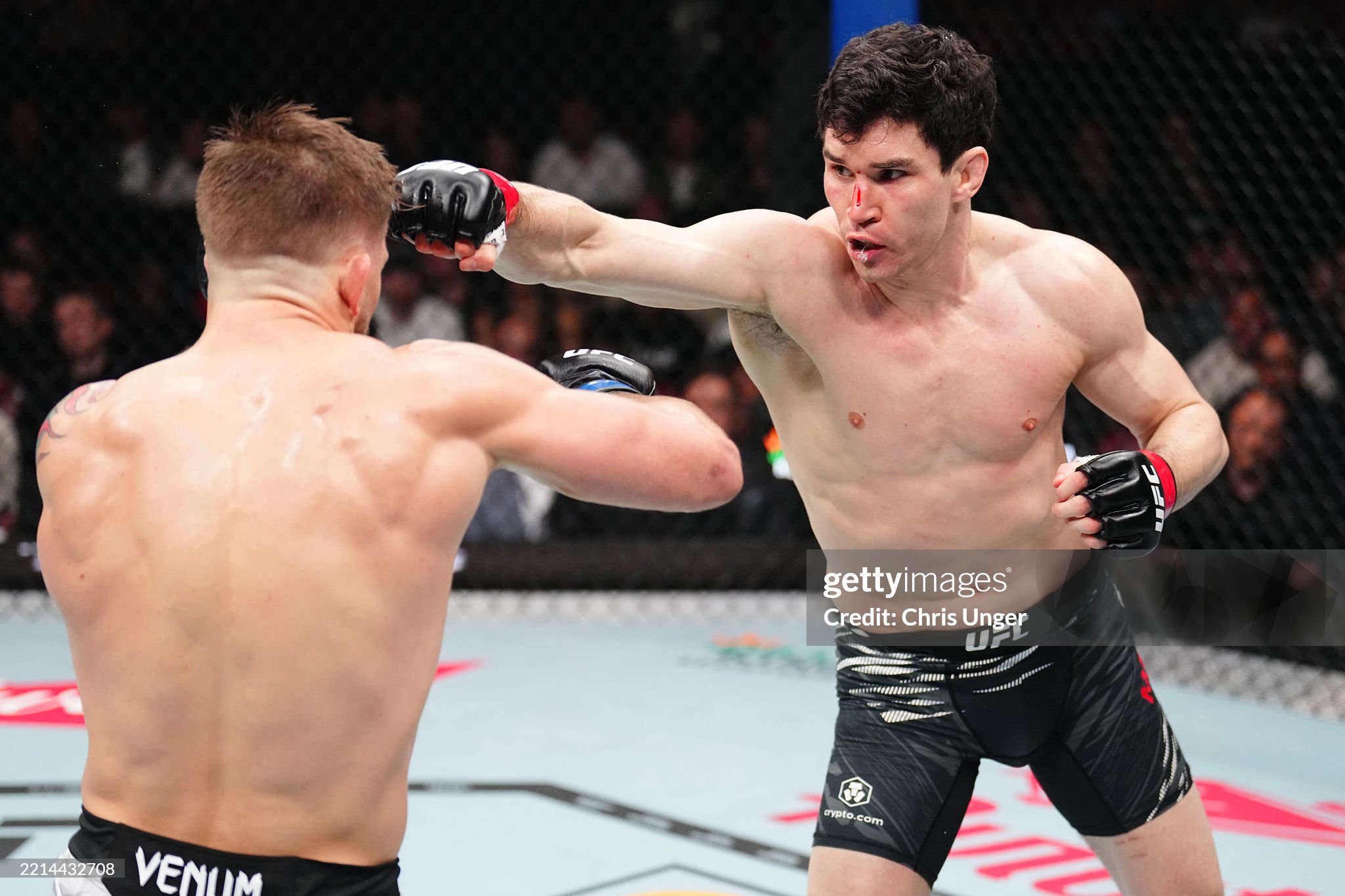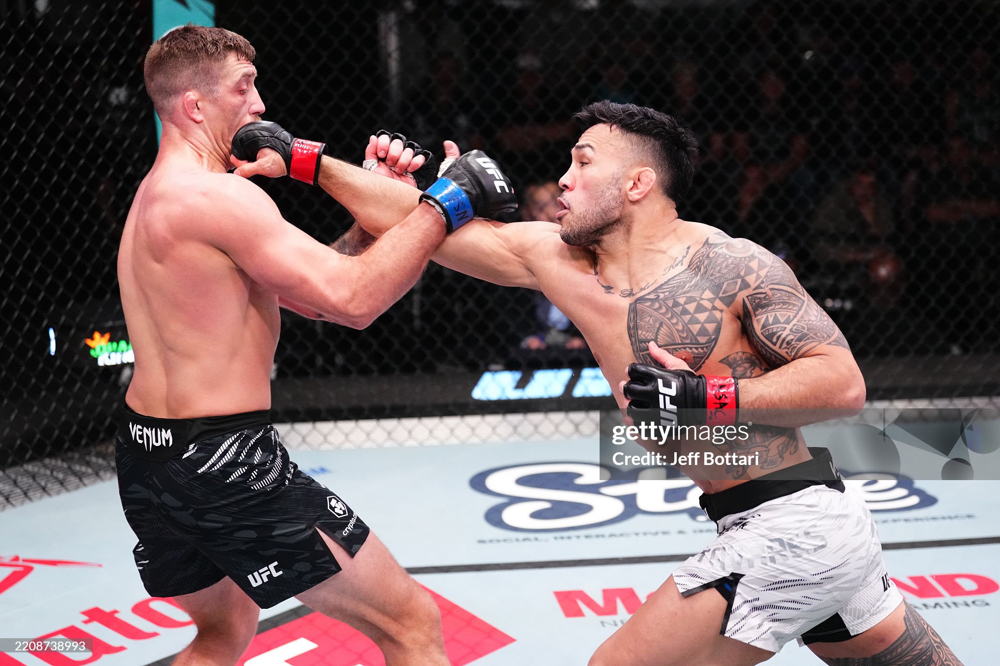 [타바레스가 머셔트의 안면에 펀치를 꼽고 있다]