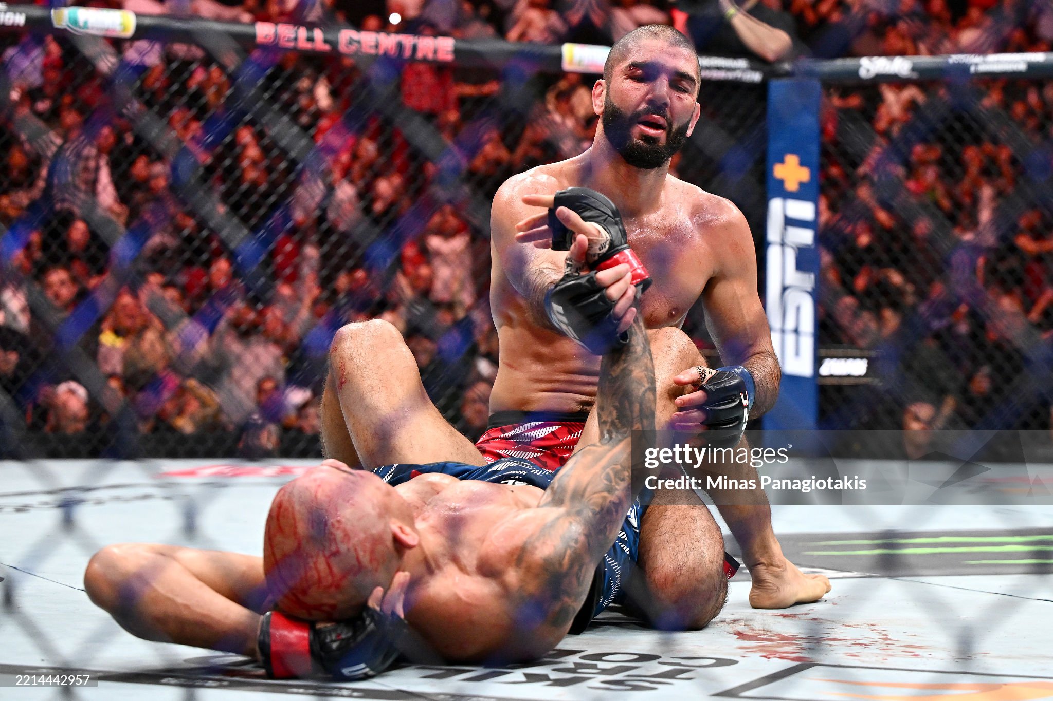 [사바티니가 브리투에게 파운딩을 가하고 있다]
