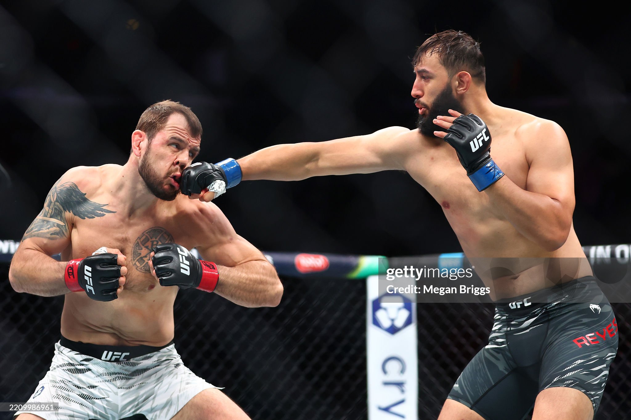 [레예스가 크릴로프의 안면을 펀치로 찌그러뜨리고 있다]