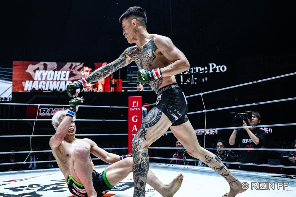 타격가 하기와라 쿄헤이(29, 일본)는 같은 지하격투기 출신이자 아사쿠라 미쿠루의 제자 니시타니 타이세이(28, 일본)를 KO로 잡아내고 아사쿠라에의 리벤지를 어필했다. 니시타니의 두 번의 테이크 다운을 성공적으로 막아낸 하기와라는 타격전에 돌입, 스트레이트 크로스 등을 맞추며 흐름을 잡아나갔다. 니시타니도 지지않고 타격으로 맞섰으나 잽을 허용한 하기와라가 라이트 오버 언더 후 다시금 라이트-레프트 콤비네이션으로 다운, 파운딩으로 마무리지었다.