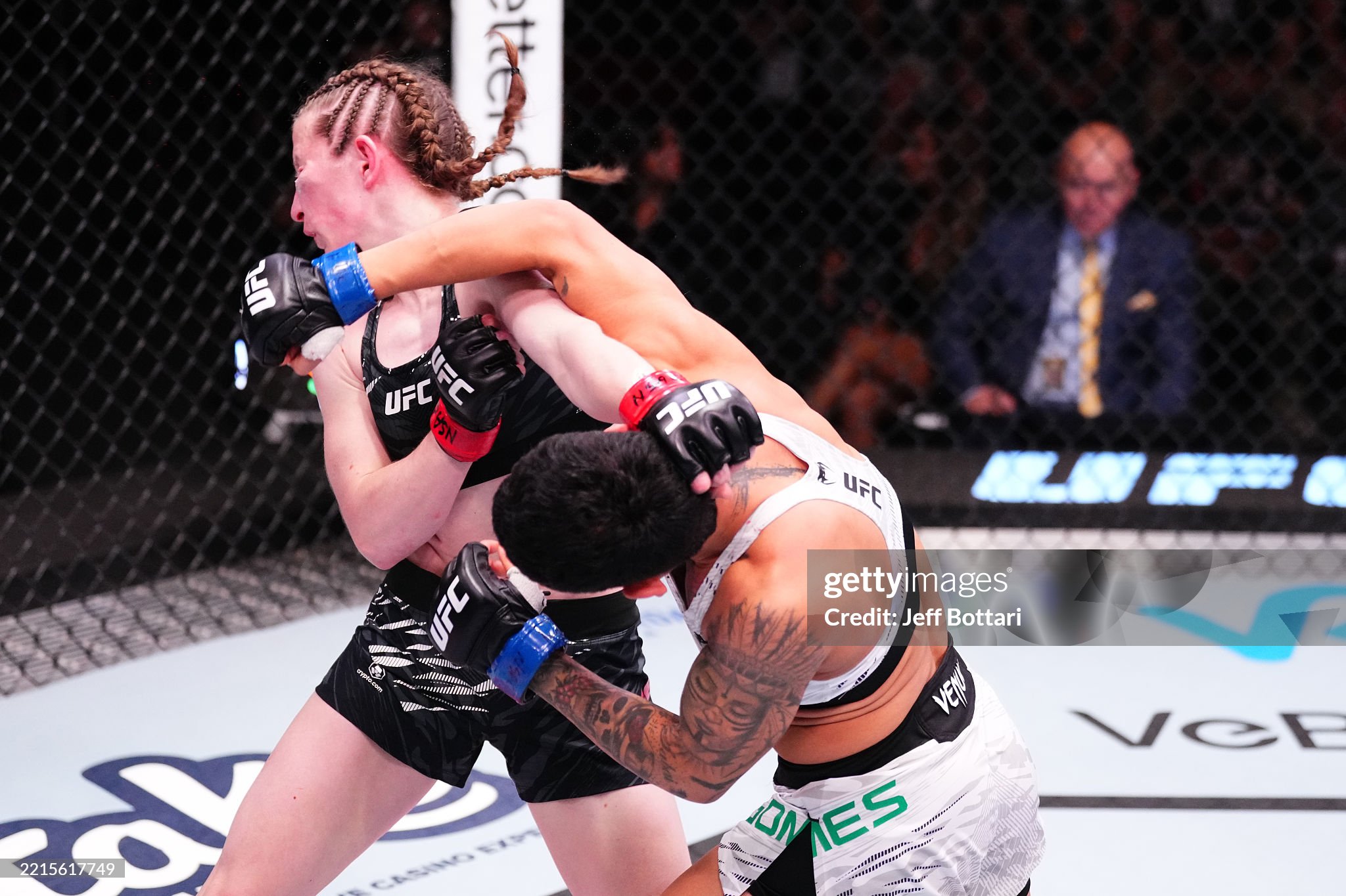 박준용과의 일전으로 국내 팬들에게도 잘 알려진 홈 로컬 단체 TKO의 전 챔피언이자 UFC 6년 차의 베테랑 마크 안드레 바리우(35, 캐나다)는 실신 KO승을 거두고 3연패 탈출에 성공, 고향 팬들을 기쁘게 했다. 4연패 중인 동갑내기 브루노 시우바(브라질)과 맞붙은 바리우는 초반 타격에 밀려 플래쉬 다운까지 내줬으나, 곧바로 들러붙었다. 클린치에서 왼쪽 언더 훅을 판 바리우는 상대의 관자돌이에 숏엘보를 히트, 상대가 흔들리자 곧바로 3방의 엘보 추가타로 승부에 종지부를 찍었다.
