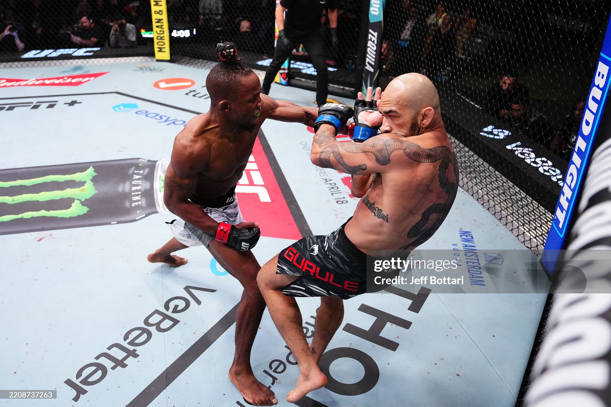 전 UFC, RIZIN 리거. '챔프' 록키 마르티네즈(39, 미국령 괌)은 갓 파더 게임의 미들급 우승자 '타노스' 에두아르두 가르봉(29, 브라질)의 그래플링에 밀려 판정패, 프로 커리어 첫 미들급 경기를 망쳤다. 상대의 어그레시브한 타격 압박에 밀려 두 차례의 테이크 다운을 내주고 첫 라운드를 내준 마르티네즈는 2R 초반 묵직한 펀치를 히트시켰으나 또 다시 가르봉의 테이크 다운과 레슬링에 밀려 일어나지 못했다. 마지막 라운드에서도 테이크 다운을 허용, 일어나지 못한 마르티네즈는 3-0으로 패배, 은퇴를 표명했다.