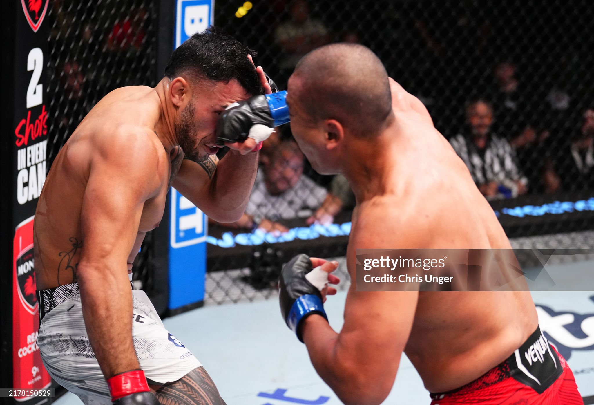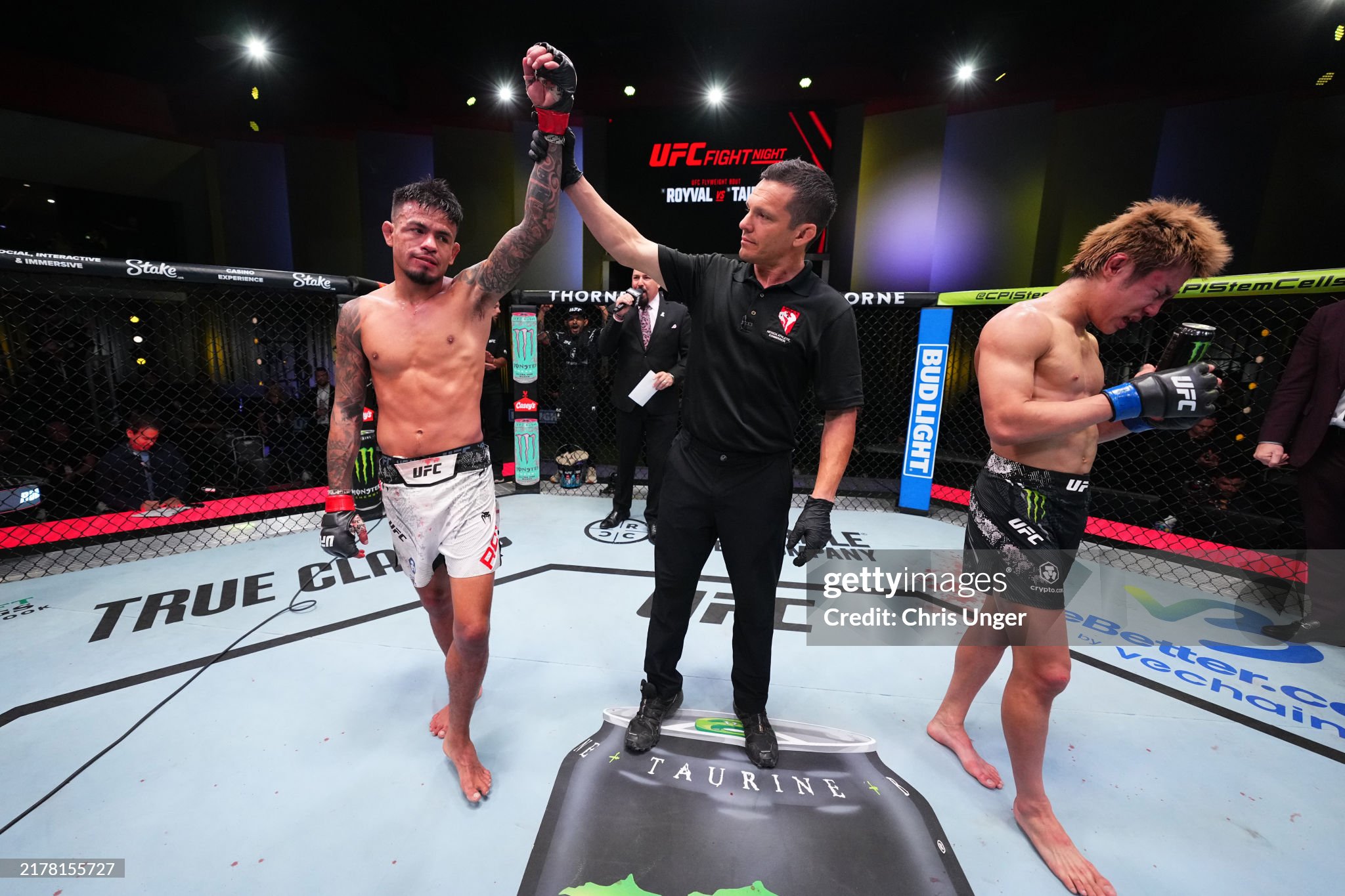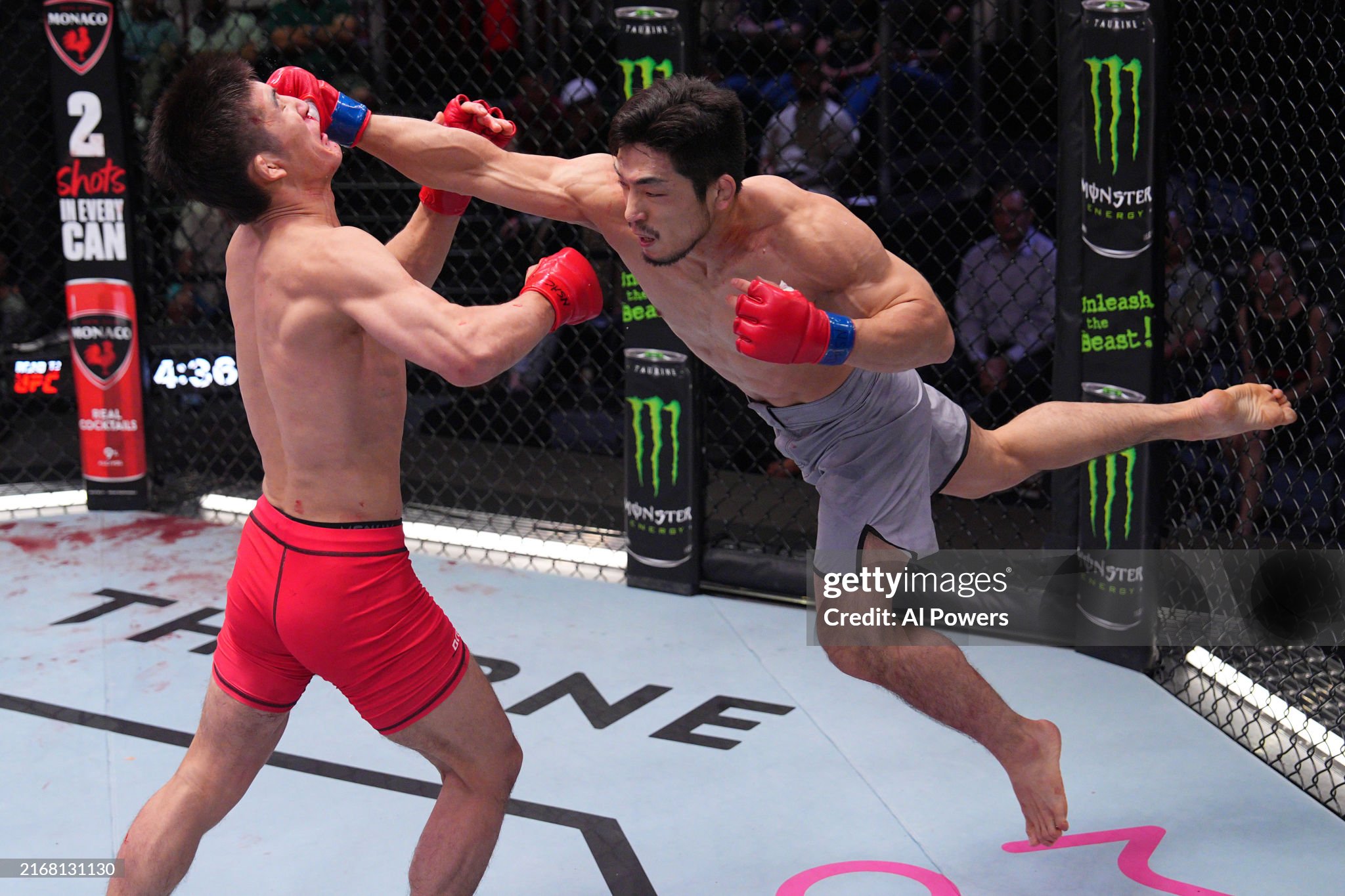 DEEP 라이트급 챔프 출신으로 페더급 랭킹 5위 나카무라 다이스케(44, 일본)는 경기 포기로 10위 '릴 슈타' 임재윤(27, 팀 매드)에 5연패에 빠졌다. 슬램과 풋 스탬프 등 상대의 기세에 밀리면서도 기무라와 암 바 등 U계 베테랑 특유의 서브미션을 보여줬던 나카무라는 초반 타격에 백을 내준 채 2R 내내 깔려 있어야 했다. 3R 스탠딩 기무라로 또 한번의 스윕을 만든 나카무라는 암 바-힐 훅까지 이어지는 체인 서브미션을 잡아나갔으나 갑자기 괴로워하며 누워버렸고, 파운딩에 무너졌다.