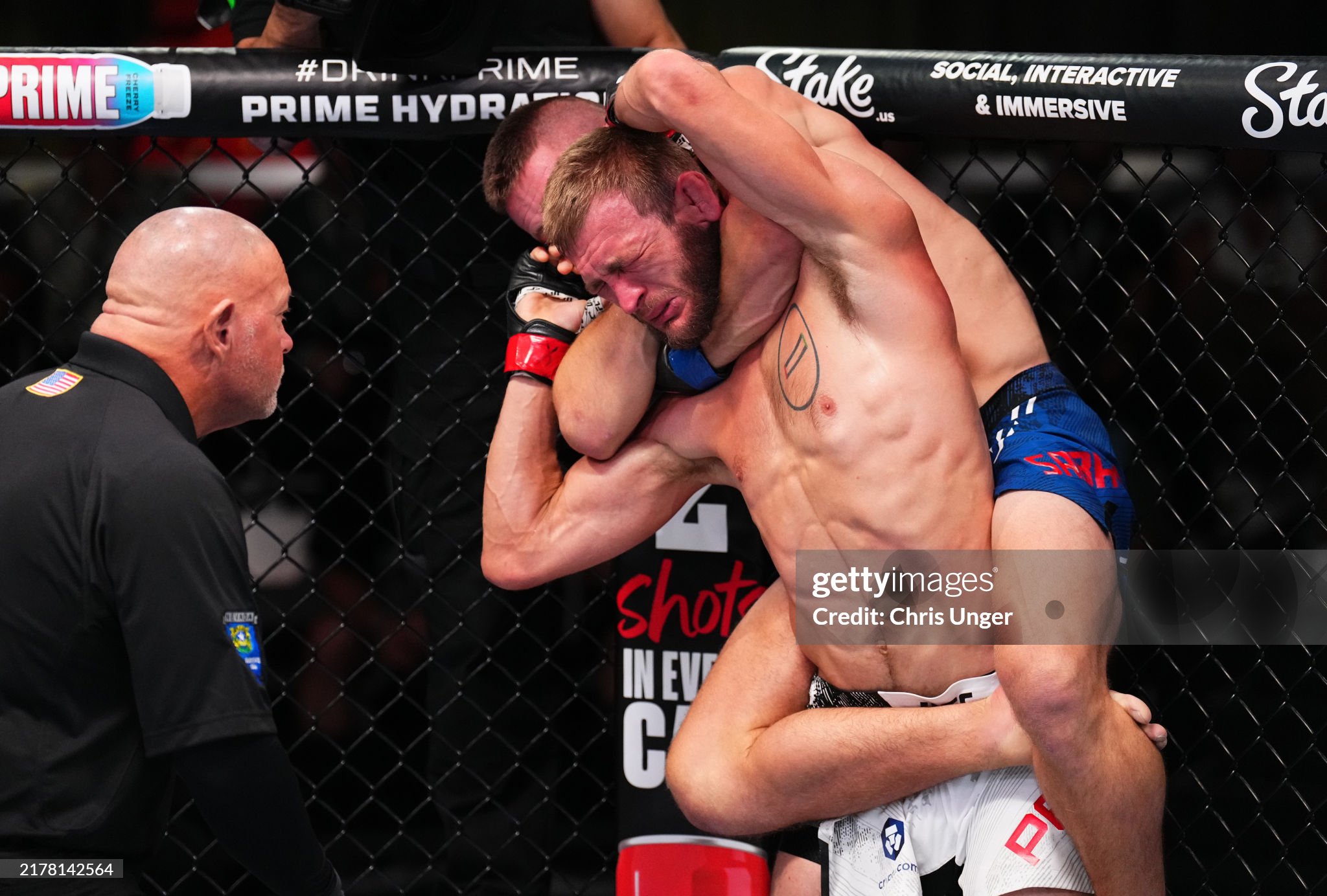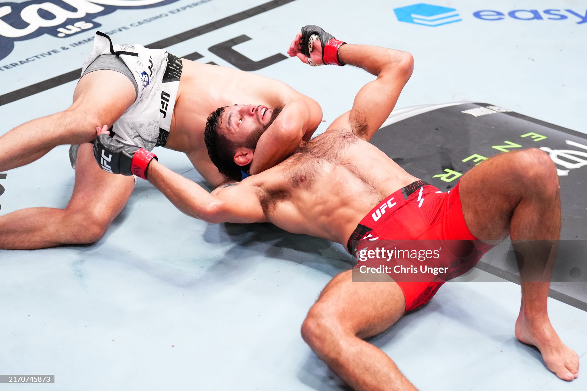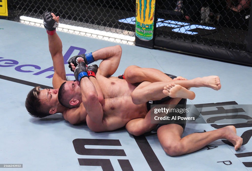 DEEP 라이트급 챔프 출신으로 페더급 랭킹 5위 나카무라 다이스케(44, 일본)는 경기 포기로 10위 '릴 슈타' 임재윤(27, 팀 매드)에 5연패에 빠졌다. 슬램과 풋 스탬프 등 상대의 기세에 밀리면서도 기무라와 암 바 등 U계 베테랑 특유의 서브미션을 보여줬던 나카무라는 초반 타격에 백을 내준 채 2R 내내 깔려 있어야 했다. 3R 스탠딩 기무라로 또 한번의 스윕을 만든 나카무라는 암 바-힐 훅까지 이어지는 체인 서브미션을 잡아나갔으나 갑자기 괴로워하며 누워버렸고, 파운딩에 무너졌다.