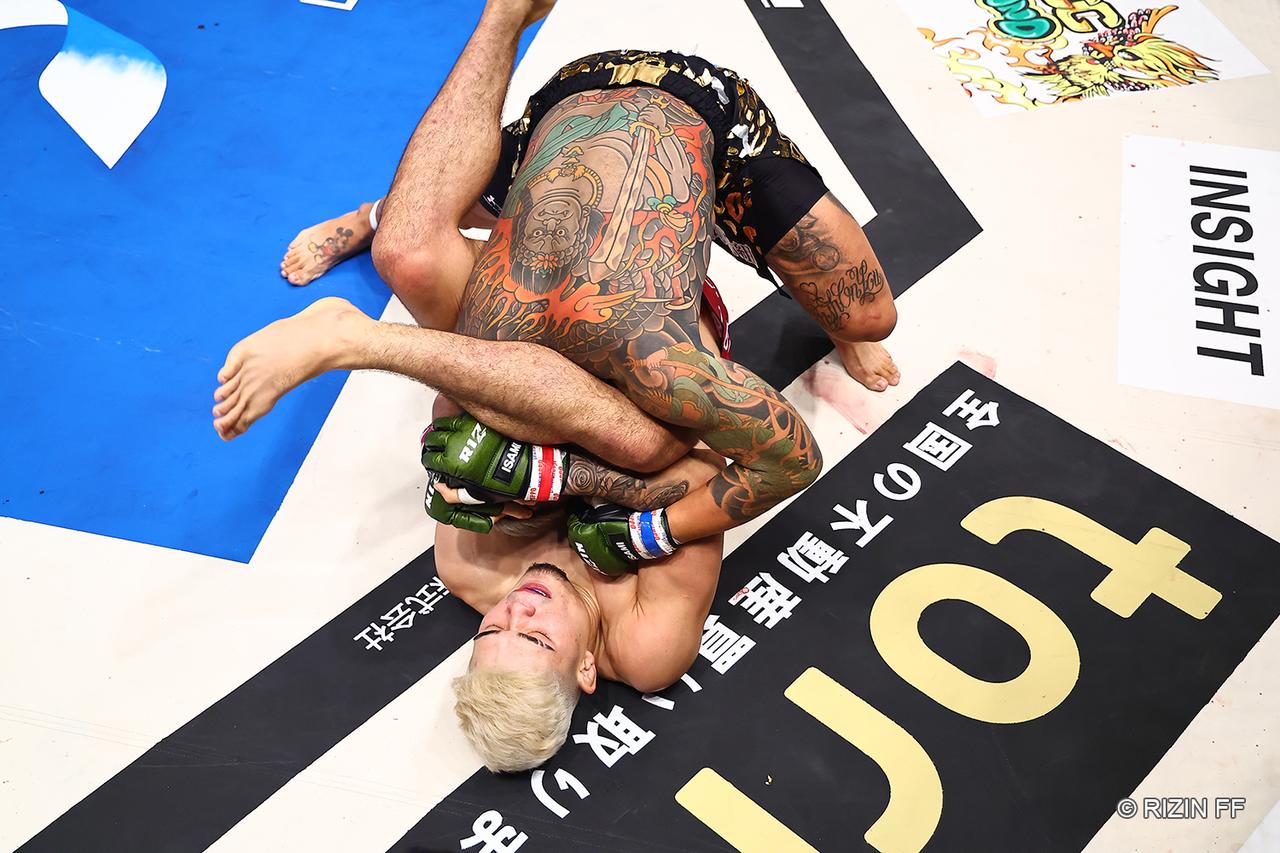 무패의 초대 그라찬 무차별급 타이틀 홀더 아라토 '괴수 킬러' 히데타카(35, 일본)는 스모 출신의 '다카겐신' 카미야마 사토시(26, 일본)에게 역전 TKO승을 거두고 라이진 데뷔 전에서 깊은 인상을 남겼다. 아라토는 1R 스트레이트를 허용하고 플래쉬 다운, 니 킥까지 얻어맞으며 다운 직전까지 밀렸으나, 종료 벨에 의해 한 숨을 돌릴 수 있었다. 허나 2R, 꾸준히 상대를 몰아 지치게 만든 아라토가 바디 훅 러쉬로 스탠딩 레프리 스탑까지 이끌어냈다.