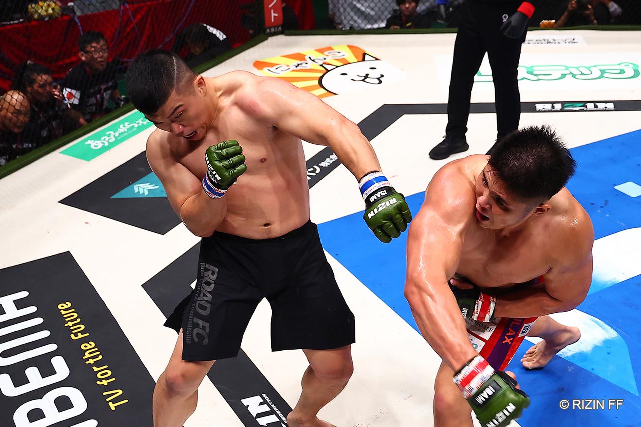 로드 투 UFC 우승자 박현성과 볼카노프스키의 트레이닝 파트너로 로드 투 UFC 플라이급 준우승자인 엘리트 낙무아이 탑노이 키우람(31, 태국)은 4년여 만의 라이진 복귀 전에서 승리를 거두지 못했다. 아웃사이더즈 챔프 출신의 복서 이토 유키(26, 일본)와 맞붙은 탑노이는 장내를 쩌렁쩌렁 울리는 미들킥 등을 앞세워 경기를 풀으려 애섰으나, 2R 허용한 상대의 빠른 복싱 콤비네이션, 페인트에 이은 어퍼 숏 블로우 등 클린 히트에 밀려, 2-1로 판정을 내주고 말았다.