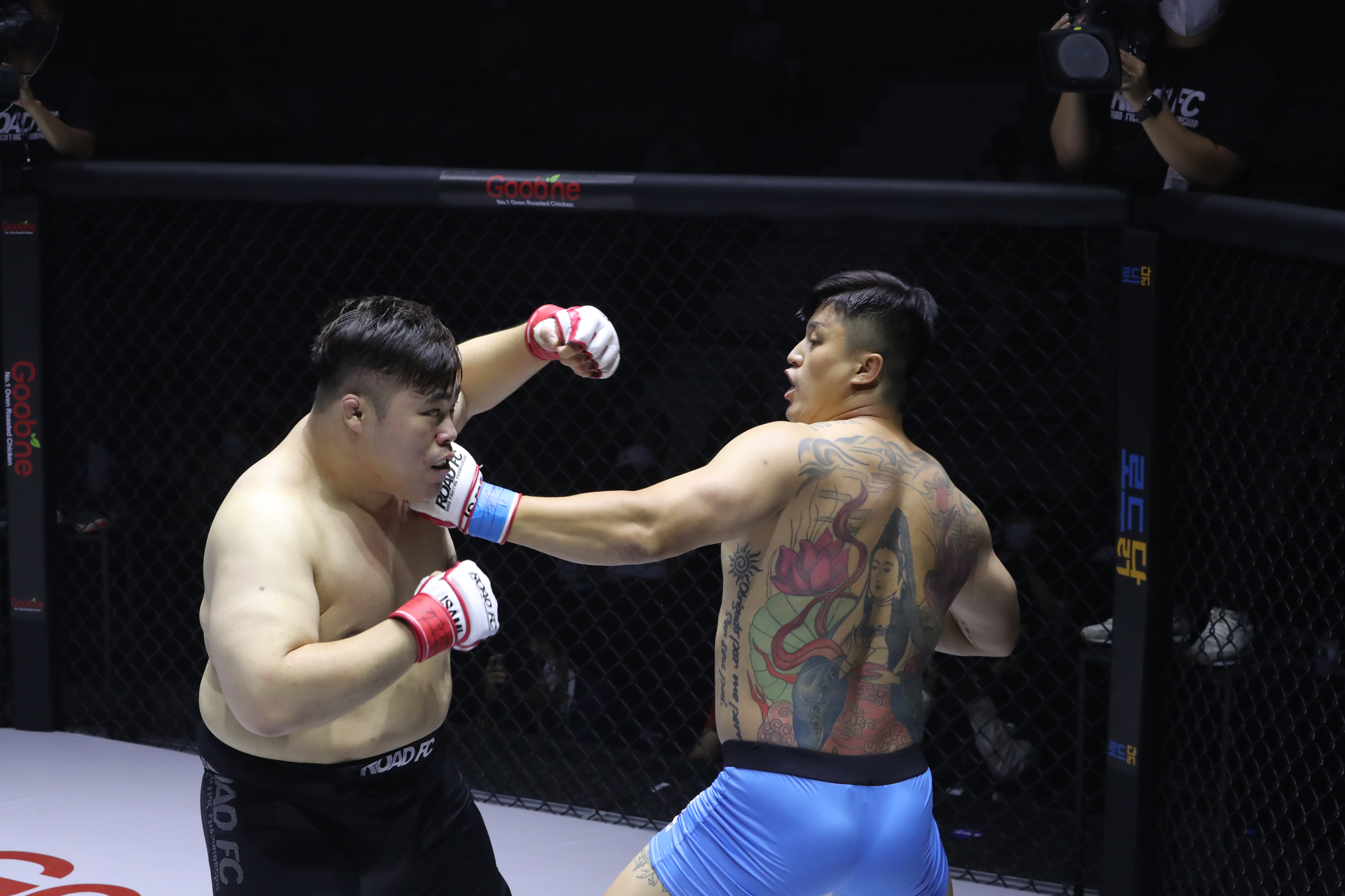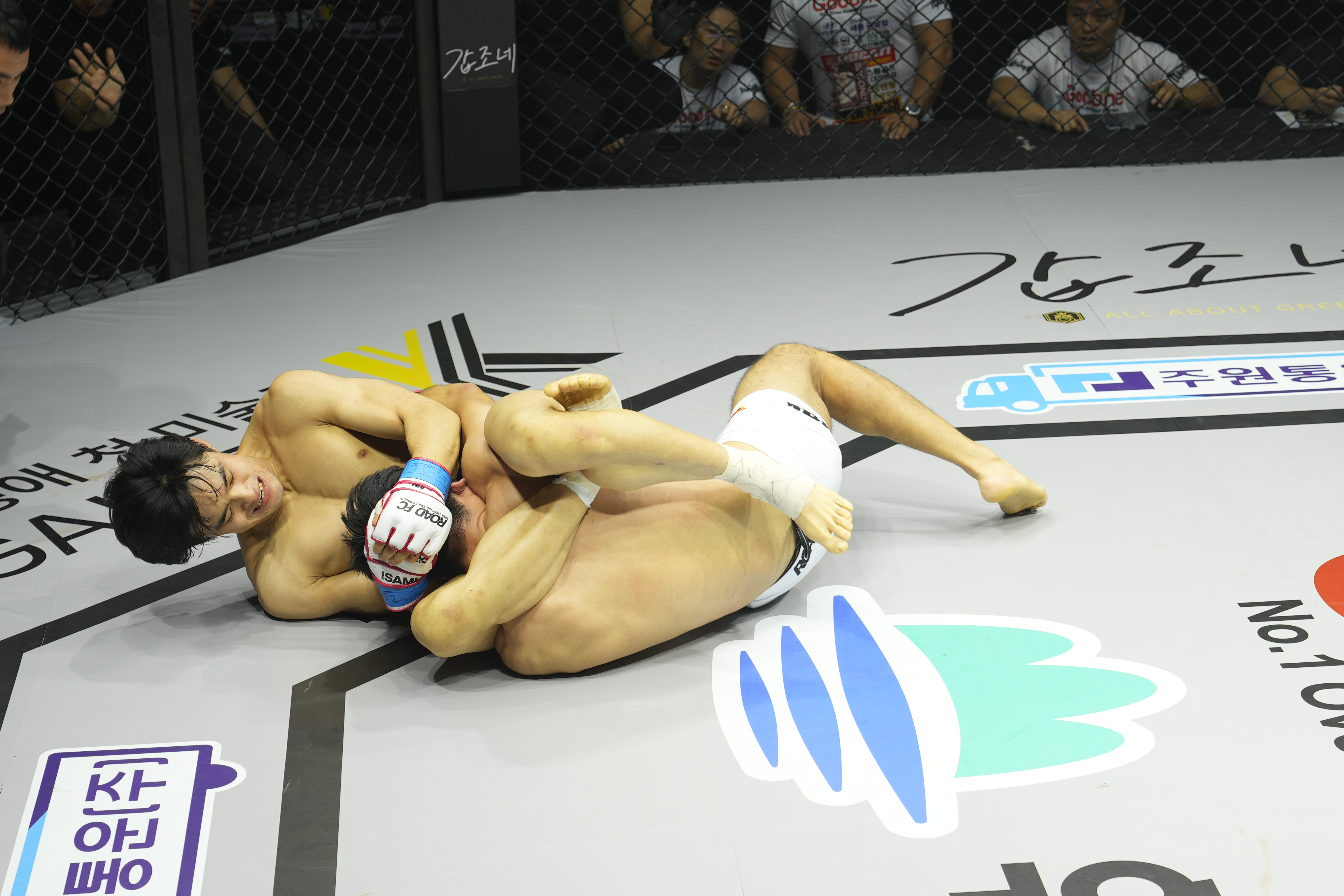 작년 글로벌 토너 아제베도 전에서도 격전을 보여줬던 '근자감' 박형근(37, Team AOM)은 일본의 젊은 기대주를 서브미션으로 잡아내고 실로 오래만의 한판 승을 기록했다. 엘리트 레슬러 출신의 베테랑 미야타 카즈유키의 제자로 6연승을 노리던 기대주 쿠로이 카이세이(23, 일본)를 로우킥과 타격으로 압박하던 박형근은 킥 캐치로 거리를 좁혀 클린치, 테이크 다운까지 뽑아냈다. 암 바를 잡기 위해 하위로 간 박형근은 그립 싸움 끝에 삼각을 완성, 쿠로이를 재워버렸다.