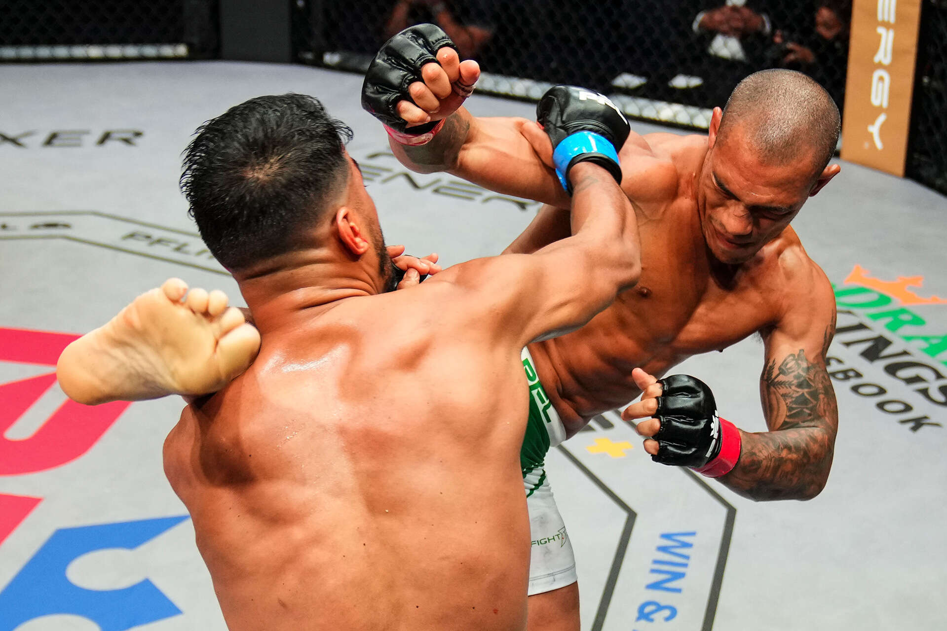 세르비안 레슬러 라자르 스토예디노비치(32, 미국)와의 PFL 2차전에 나선 UFC 출신 쉐이먼 모라에스(30, 브라질)은 TKO로 거의 3년여 만의 연승행진을 재계했다. 오버 언더 훅과 바디 락을 곁들인 레그트립에 탑 마운트까지 내줬으나, 레그 트립으로 반격하며 1R을 견딘 모라에스는 2R부터 타격 압박으로 차츰 흐름을 잠식해 나갔다. 라운드 막판 가드 후 들어와 훅을 던지는 상대를 모라에스가 레프트 카운터로 다운, 터틀에서 굳은 상대에 파운딩 샤워로 경기를 마무리했다.