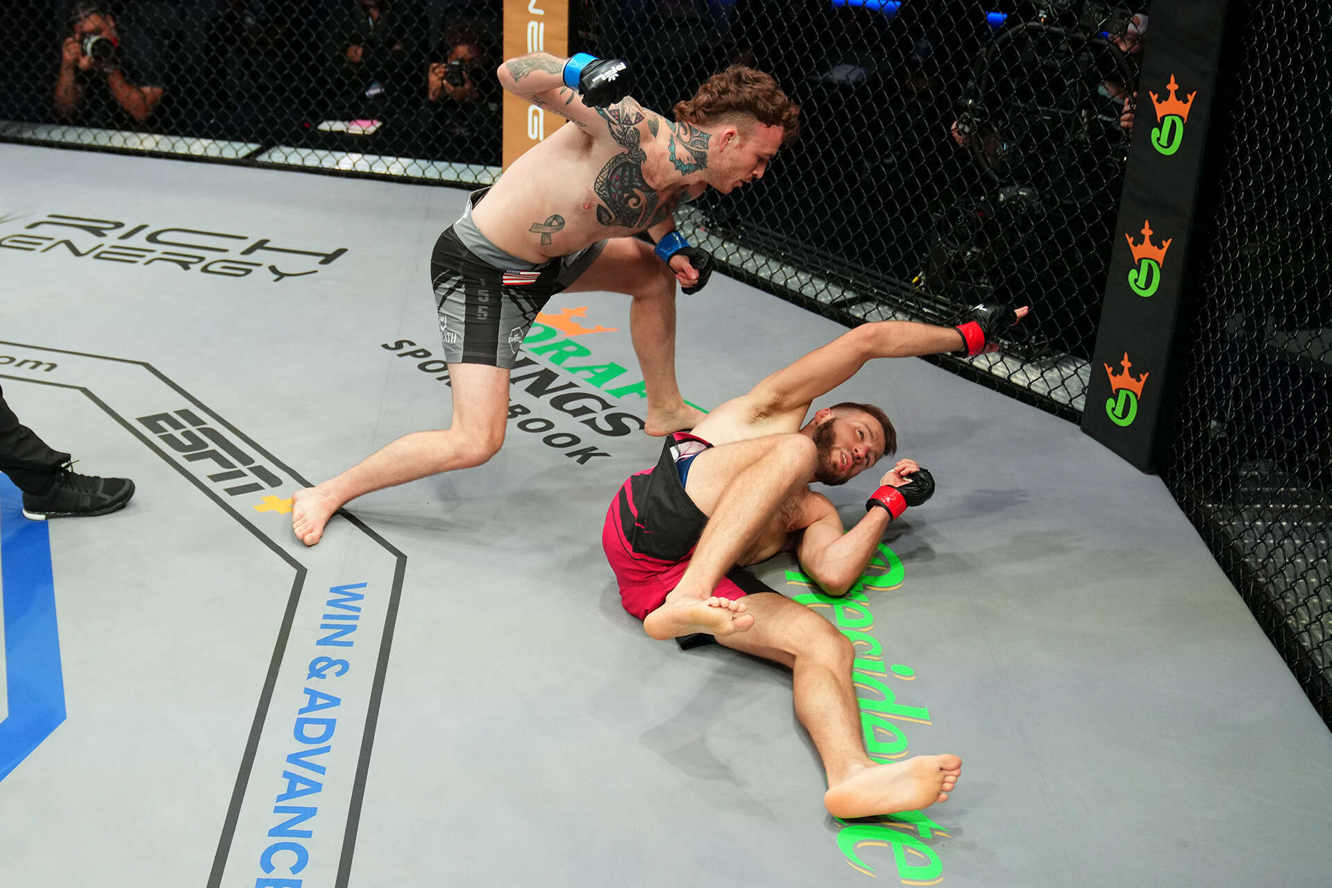 [젠킨슨이 플라잉 니 킥에 다운된 킬번에게 파운딩을 가하고 있다]